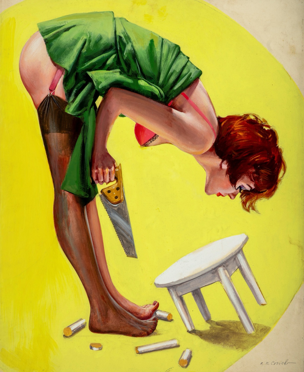 Dipinto originale realizzato da Ciriello per la copertina del settimanale eroticomico Menelik n. 62, edito dalla Tattilo Editrice nel 1972. Un'opera iconica di uno dei più grandi cartellonisti e copertinisti della sua epoca. Firmato.