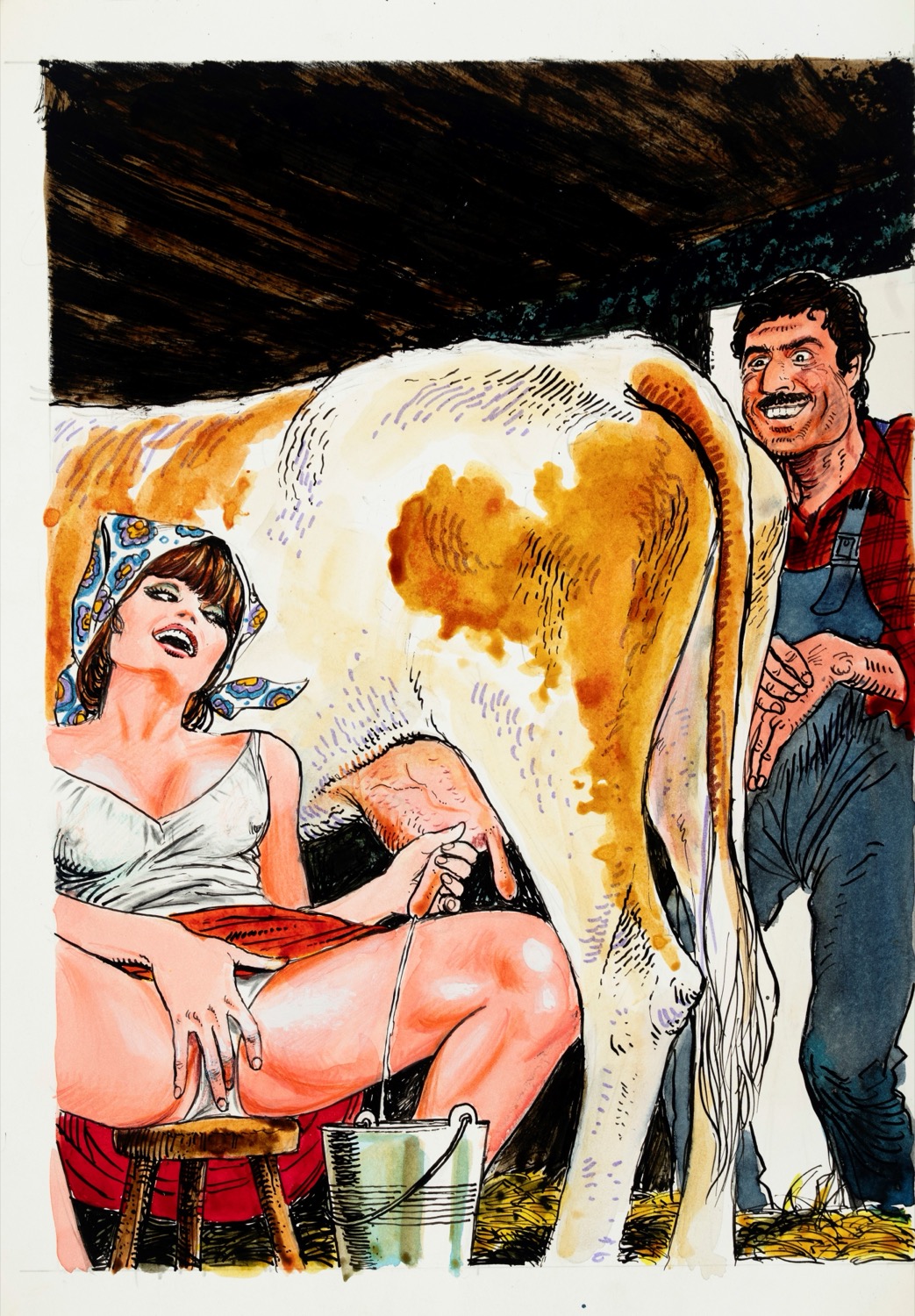Originale di copertina realizzato da Manara per "Un affare di vacche", edito su Il Montatore n. 28 dalla Publistrip nel 1976.