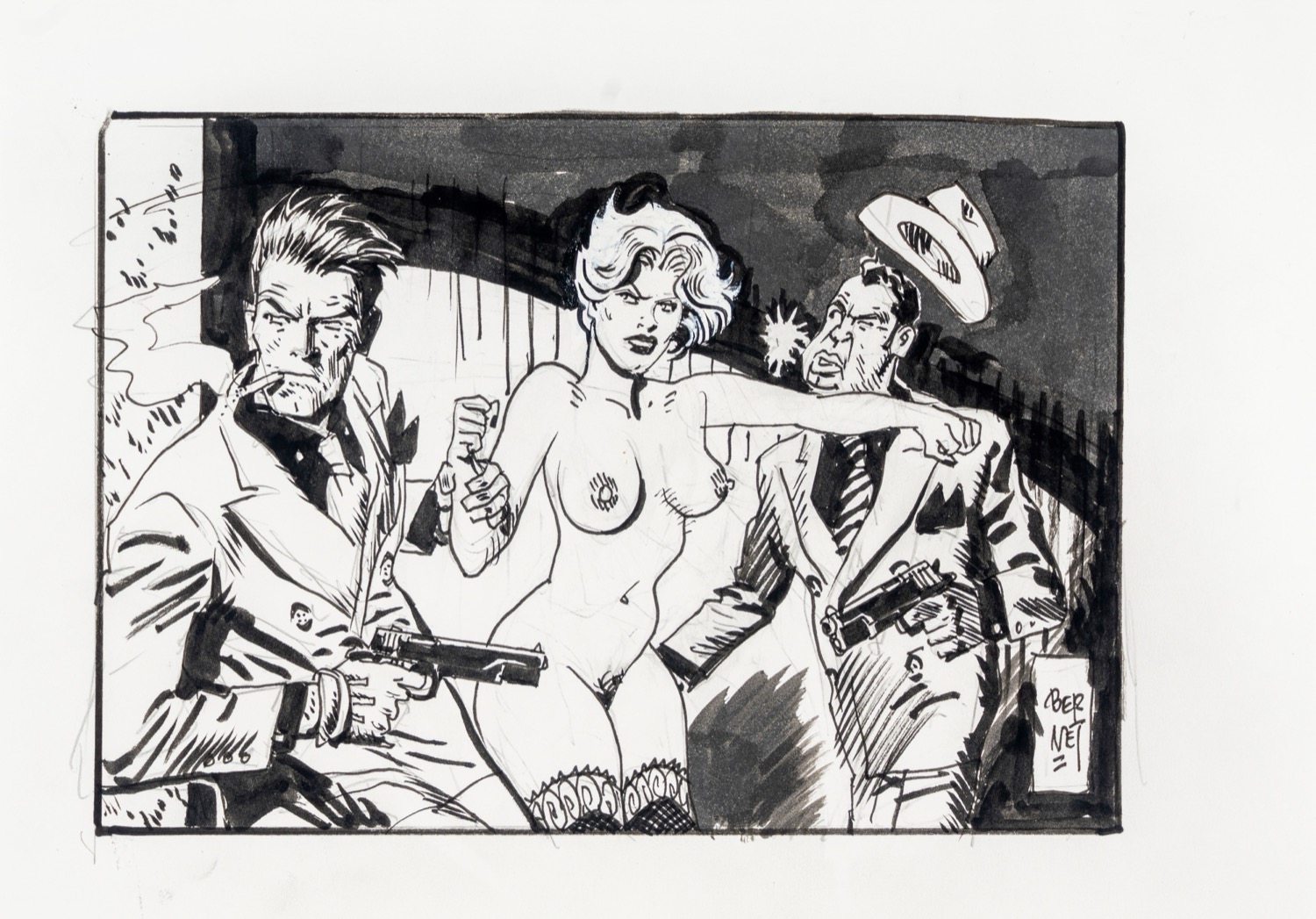 Illustrazione originale realizzata da Bernet per il suo Torpedo. Antieroe per antonomasia, Torpedo è protagonista di uno dei fumetti noir più amati e celebrati dal pubblico di tutto il mondo che rese l'artista spagnolo il maestro indiscusso di questo genere. Firmata.