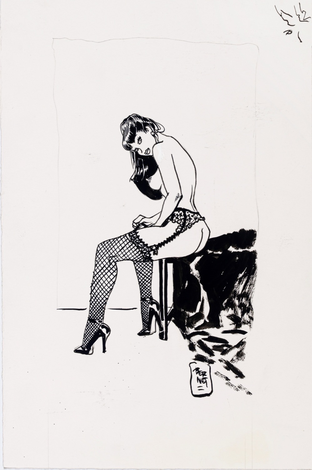 Illustrazione originale realizzata da Bernet per la sua sexy eroina Chiara. Firmata.