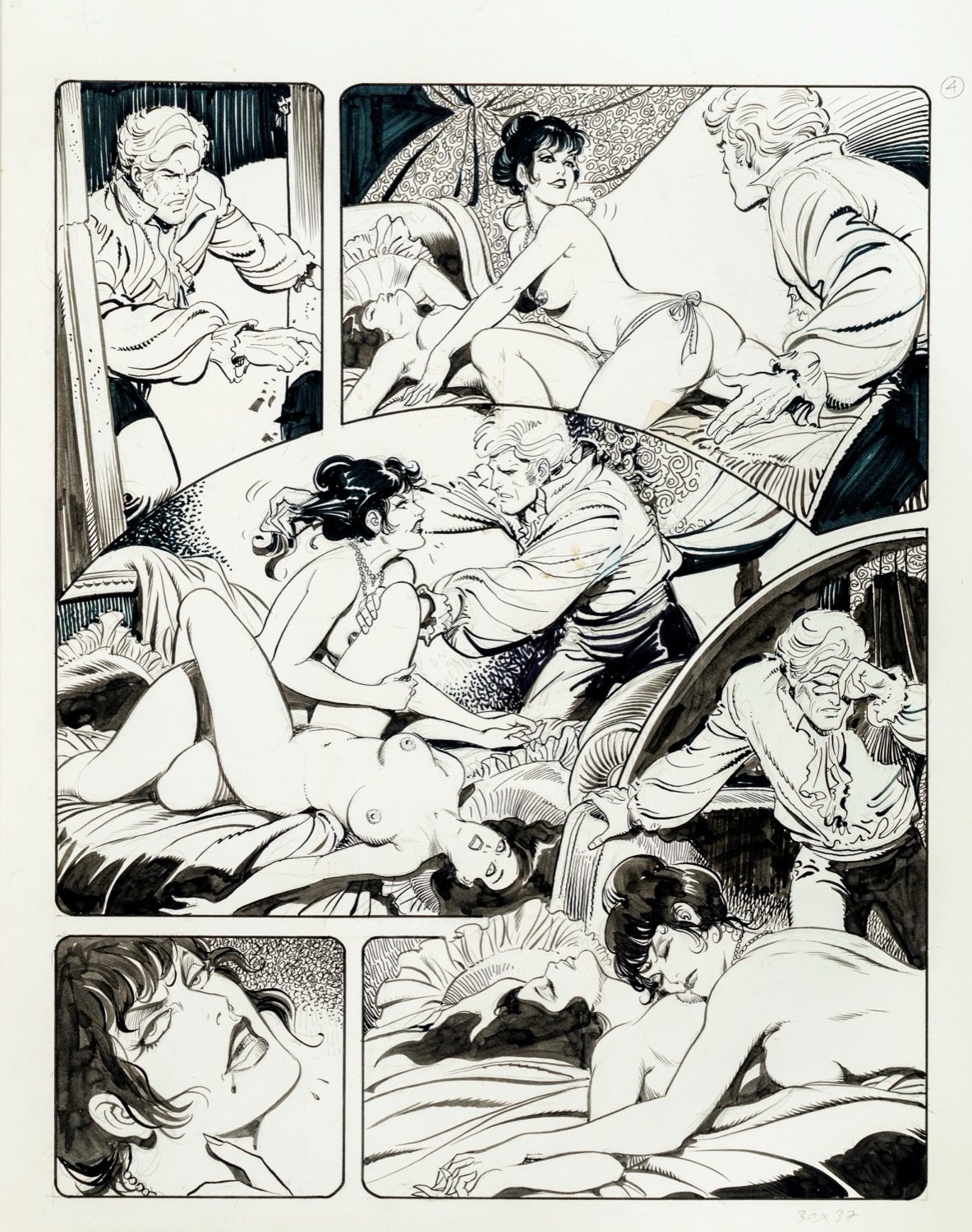 Tavola originale realizzata da Frollo per la storia breve intitolata "Gamiani", edita per la prima volta su Diva Amour Fou nel 1989.