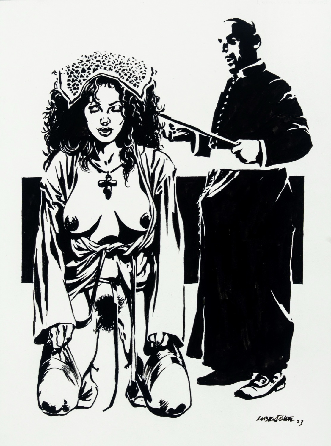 Illustrazione originale realizzata da Liberatore per il portfolio "B. & W." edito dalle Edizioni Di nel 2008. Un raffinato erotismo degno di uno dei grandi maestri internazionali dell‘eros. Firmata e datata.