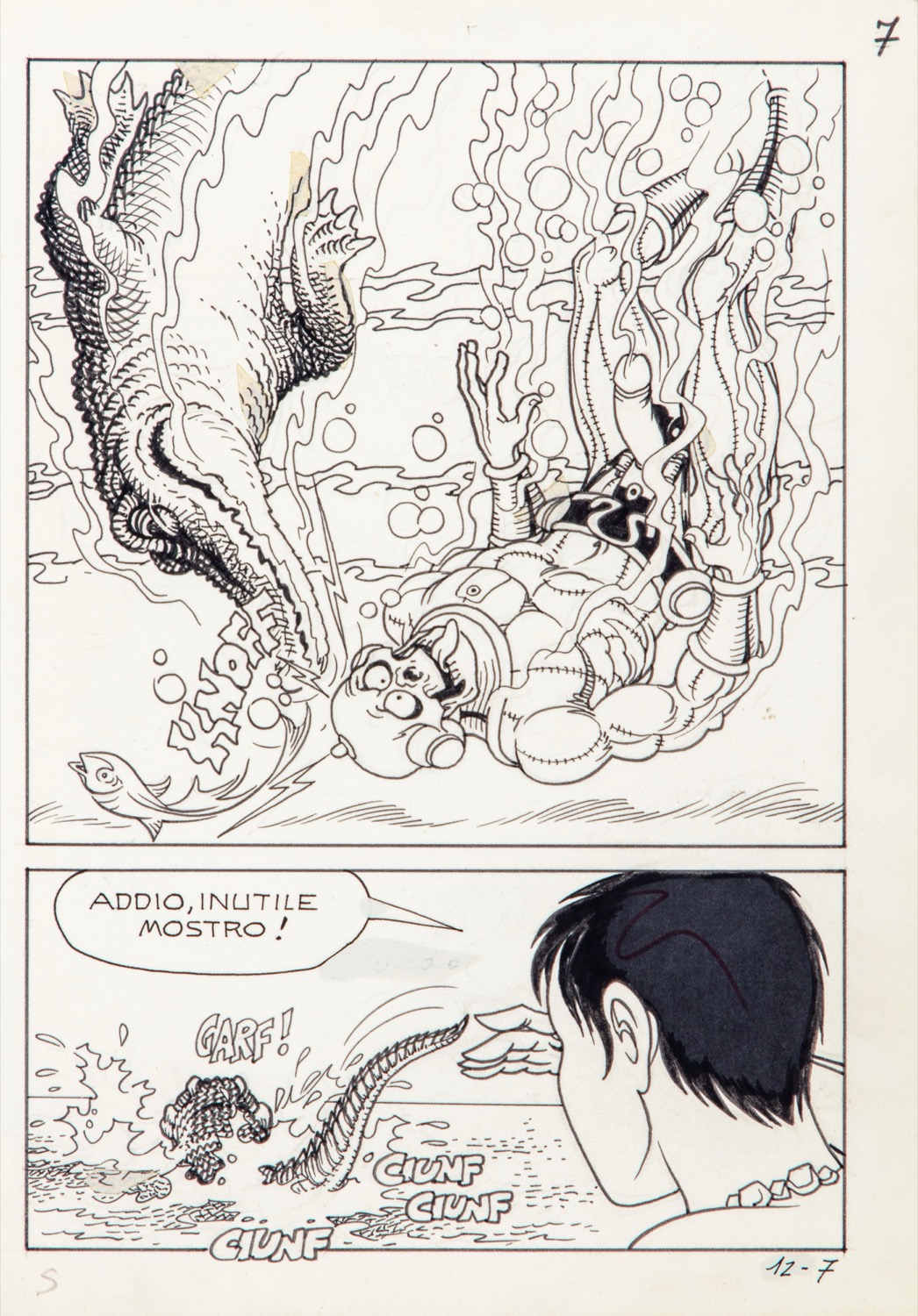 Tavola originale realizzata da Magnus per "Sopraffatta dai mostri", edita su Necron n. 12 a pag. 7 dalla Edifumetto nel 1983.
