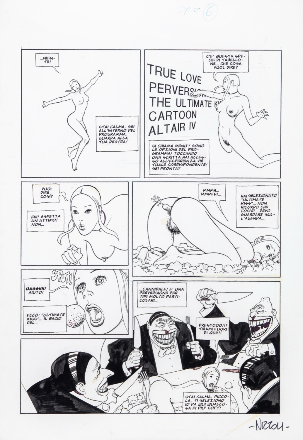 Tavola originale realizzata da Nizzoli per "Simbaby", pubblicata per la prima volta a pag. 6 dall‘editore Phoenix Enterprise nel 1995. Firmata.