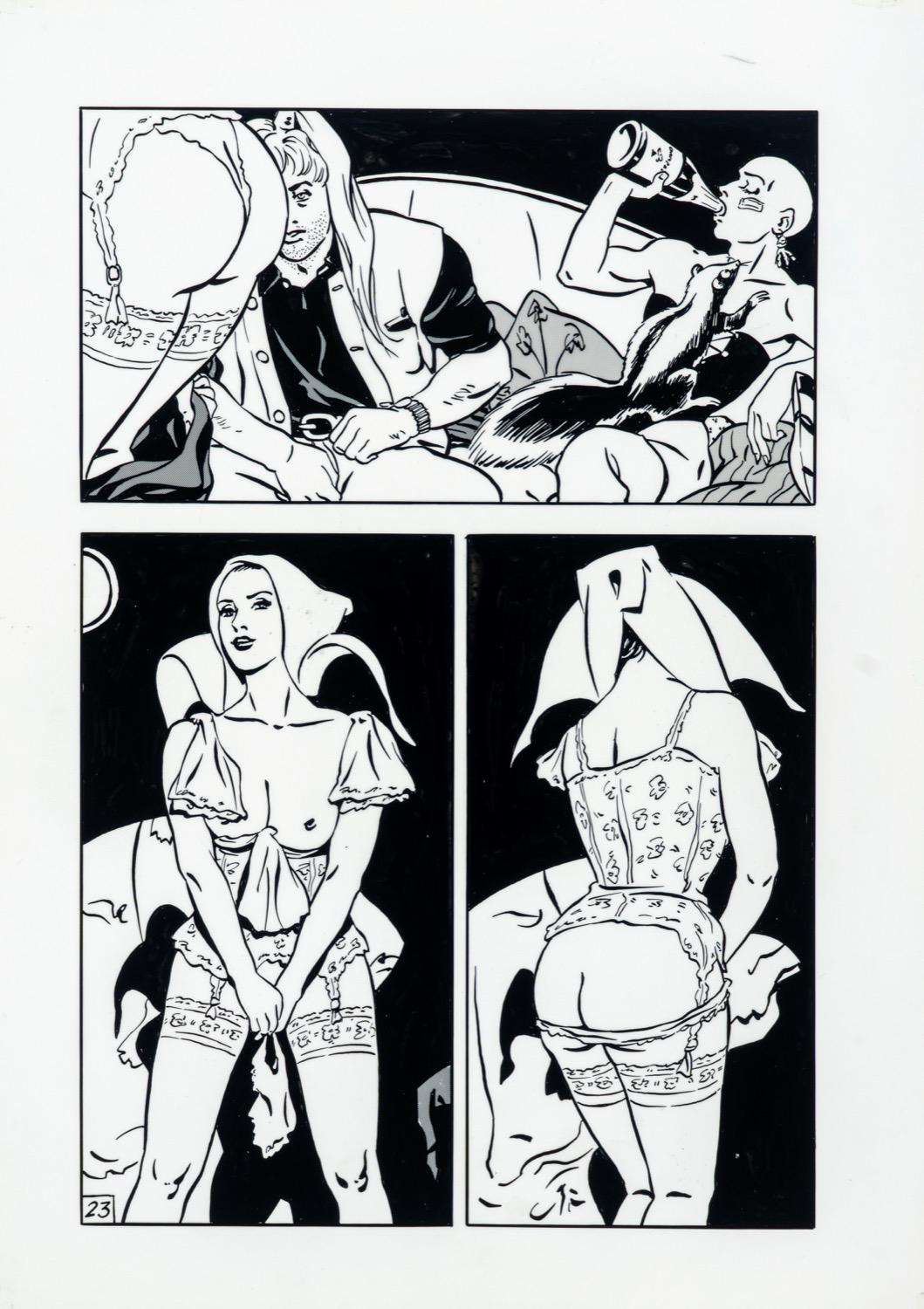 Coppia di 2 tavole originali realizzate dal maestro francese Varenne per una sua avventura erotica edita durante gli anni '80.