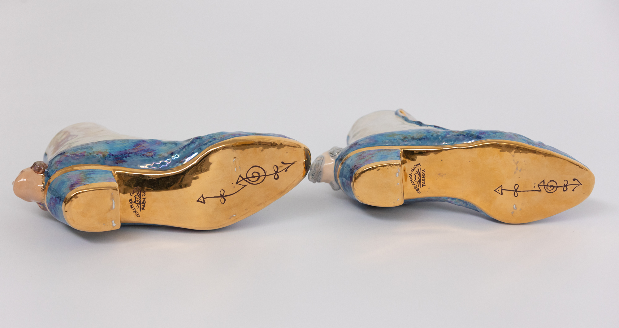 Monogramma dell'artista e timbro Ceramica Gatti (Faenza) alla base di ciascuna