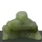 Buddha in giada verde chiaro , h cm 8x11,5 Incavo nell'oggetto tenuto nella mano sinistra, forse mancanza di un oggetto.