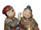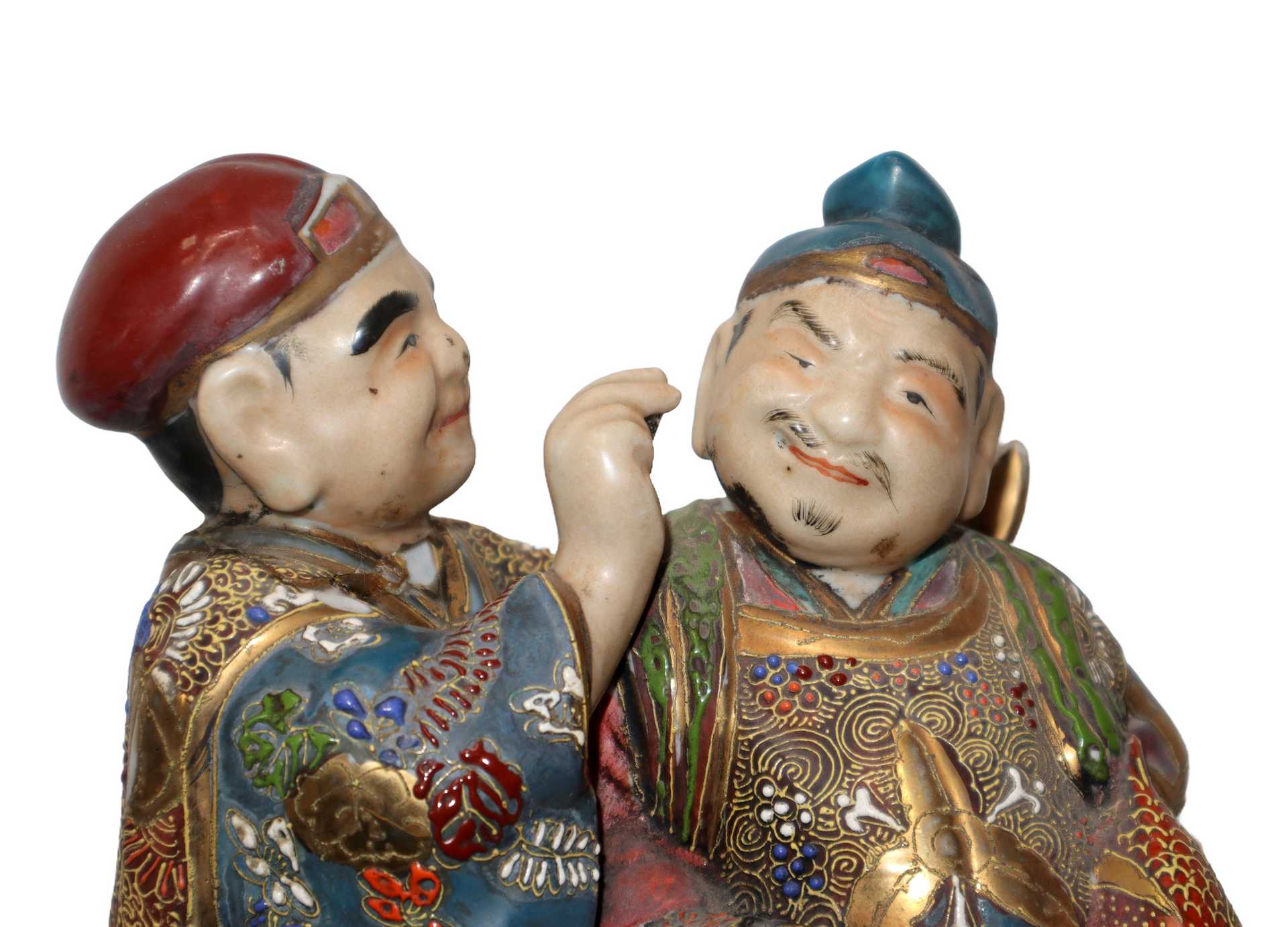 Coppia di figurine giapponesi con dettagli smaltati in blu e oro