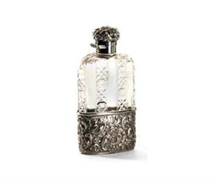 FIASCHETTA CRISTALLO E ARGENTO Fiaschetta in cristallo molato e argento cesellato città di Londra 1894 In cut crystal and silver flask engraved City of London 1894