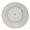 Piatto giapponese in ceramica smaltata in blu con raffigurazione di geisha in campo fiorito , h cm 2.5x19 Piatto giapponese in ceramica, sfondo blu, raffiguarzione di geisha seduta su panca dorata in un campo fiorito. Contorno decorato con linea dorata e fiori bianchi. Marchio con caratteri giapponesi sul retro.