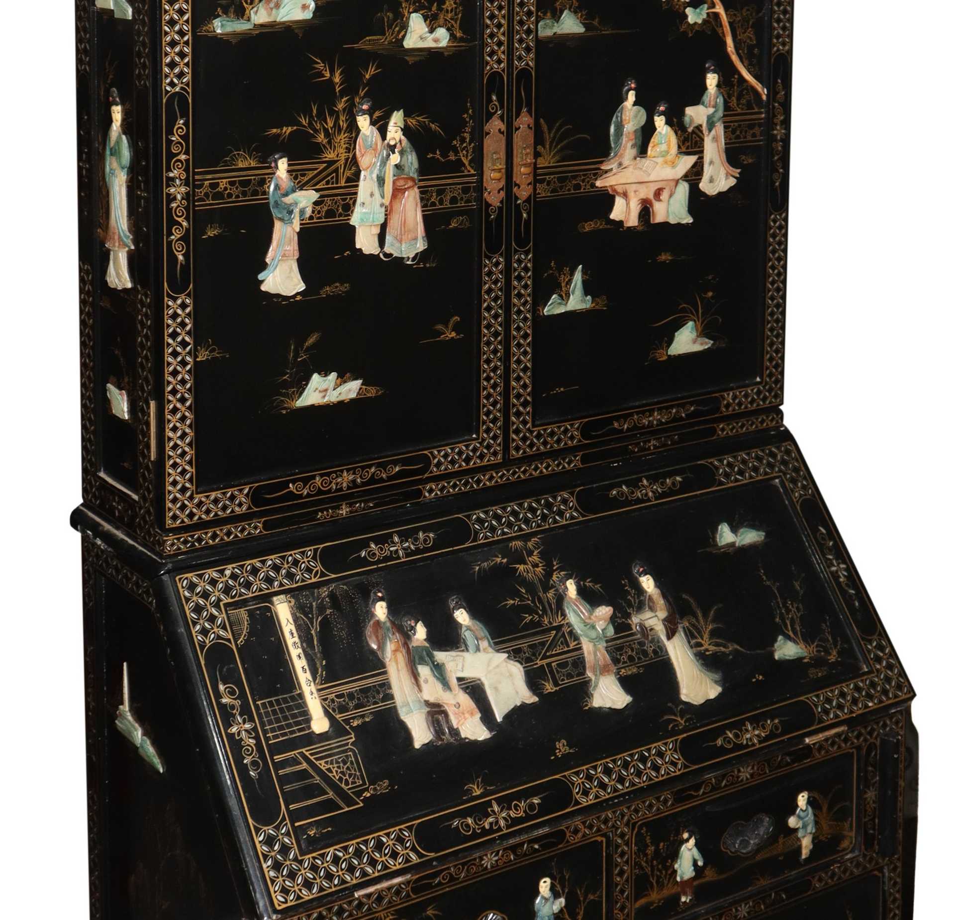 Mobile cinese con inserti in pietre dure che rappresentano scene di vita