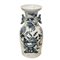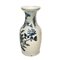 Vaso cinese in porcellana bianca con decori azzurri su base in legno , h cm 42,5 con base , h cm 49 Presenti incollature