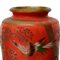 Vaso cinese in ceramica, laccato rosso con decorazioni di uccelli e bamboo