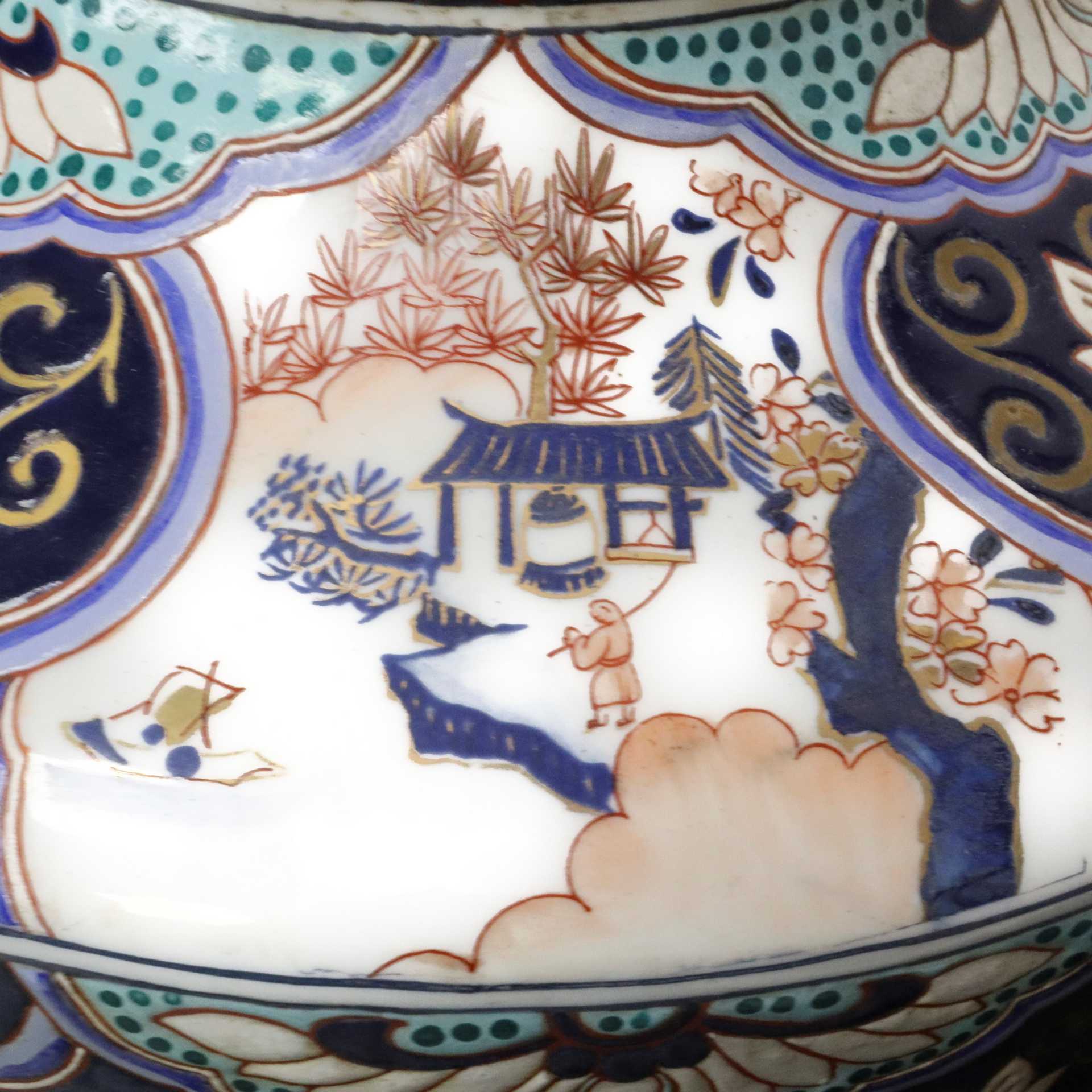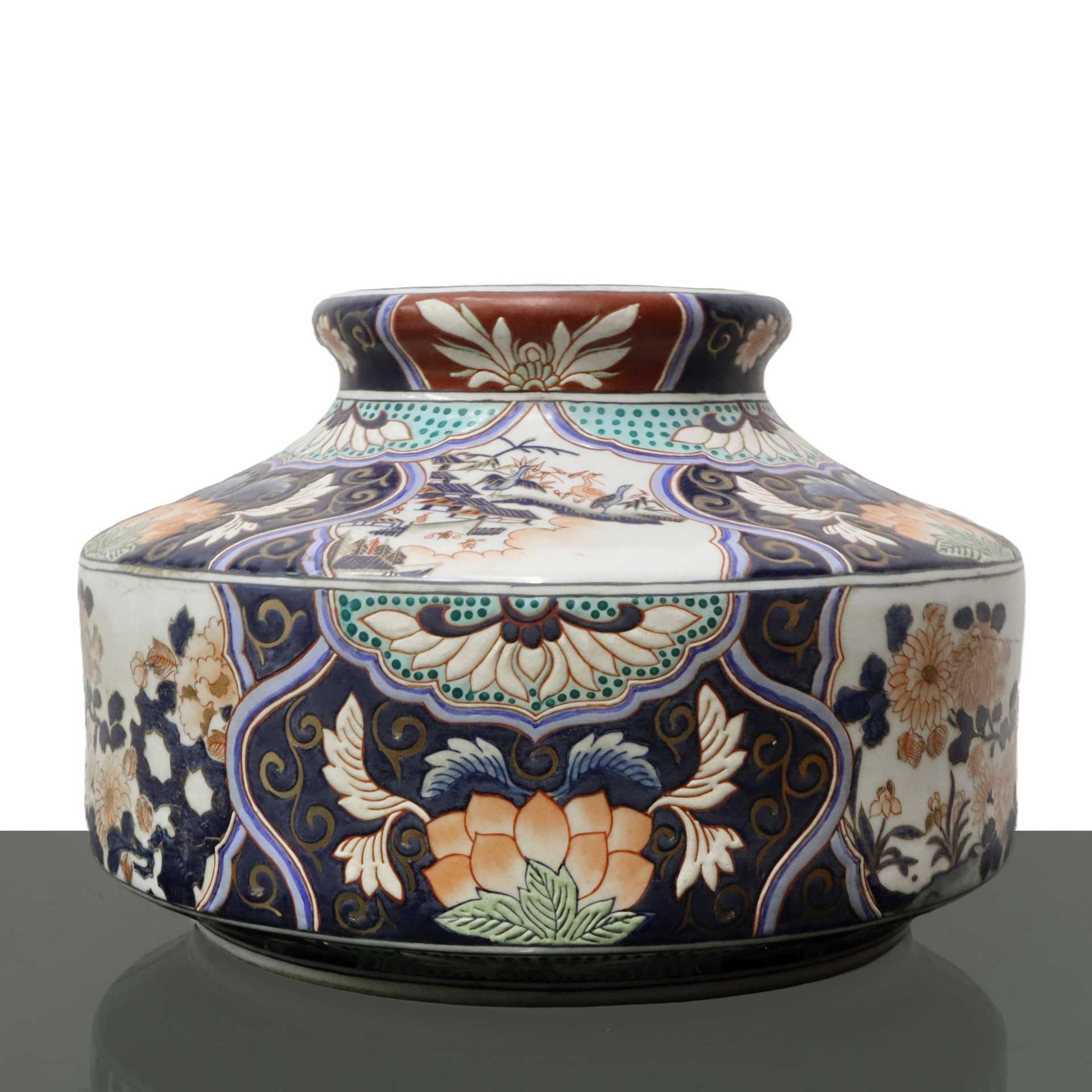 Vaso cinese policromo forma tonda con decorazioni floreali