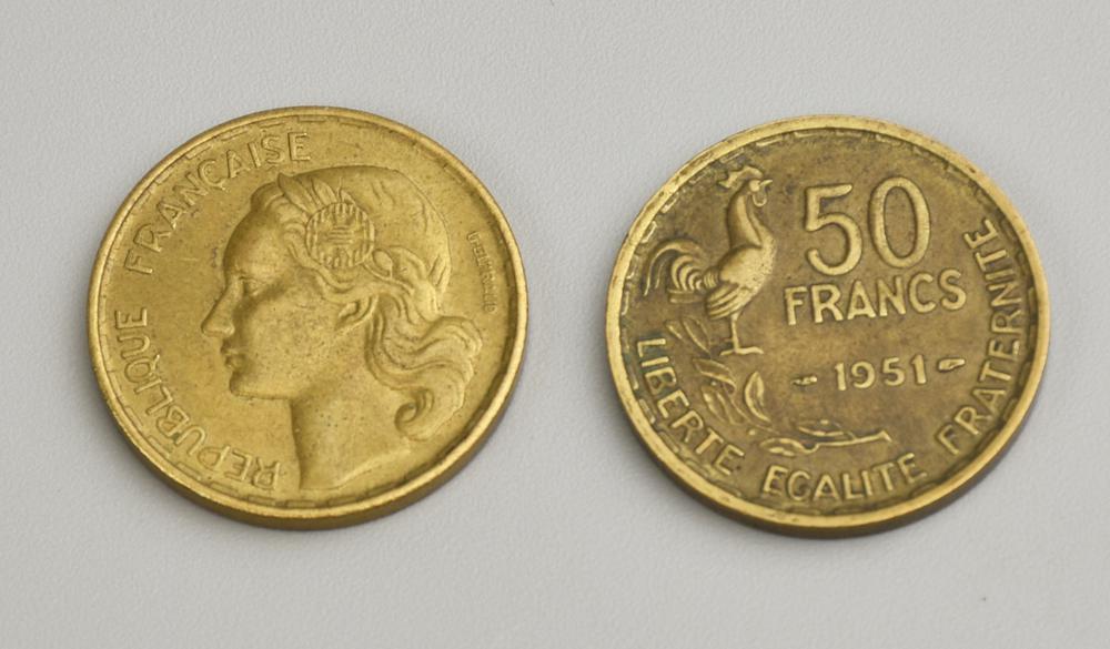 LOTTO DI FRANCHI FRANCESI composto da 2 monete da 50 franchi vari anni di...
