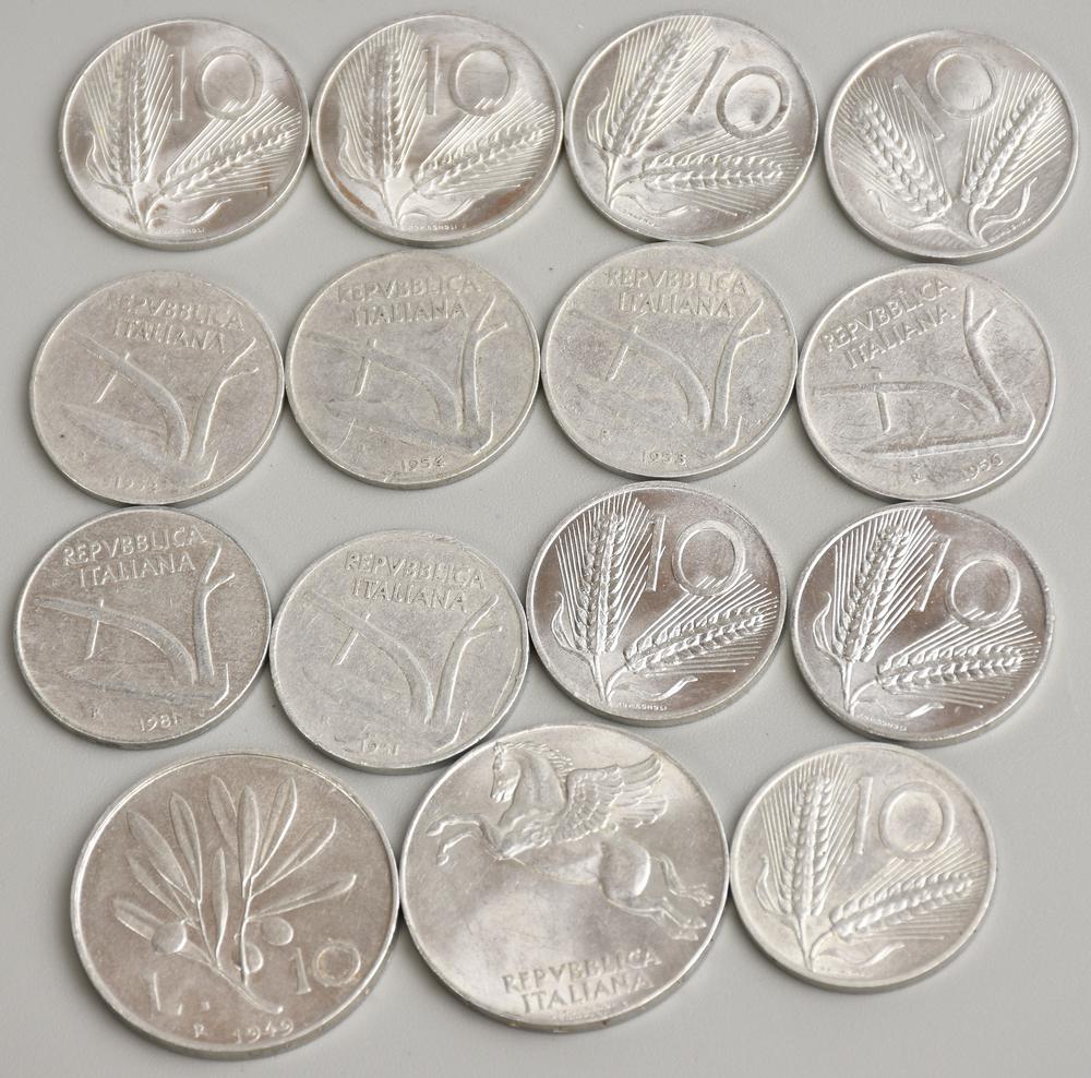 LOTTO DI LIRE ITALIANE composto da 15 monete da 10 lire varie annate di...