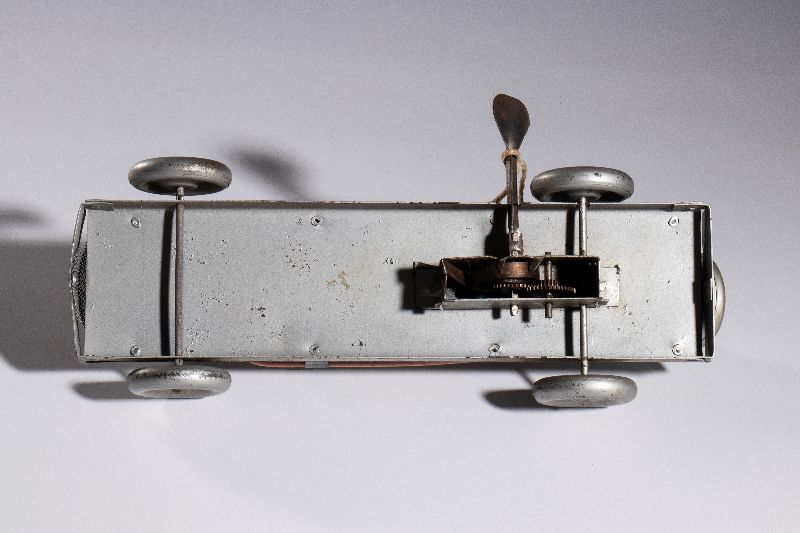 Autocorsa da record, modello SPEEDBIRD della Tubby. Latta litografata, carica a molla funzionante, con chiave originale. Presente porzione di scatola. Misura circa cm.33 di lunghezza. In buone condizioni