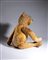 Imbottitura in paglia, arti e testa mobili, 3 artigli per zampa, occhi a bottone. Mancanze alla pelliccia in mohair, panno delle zampe con strappi e fori di tarma.