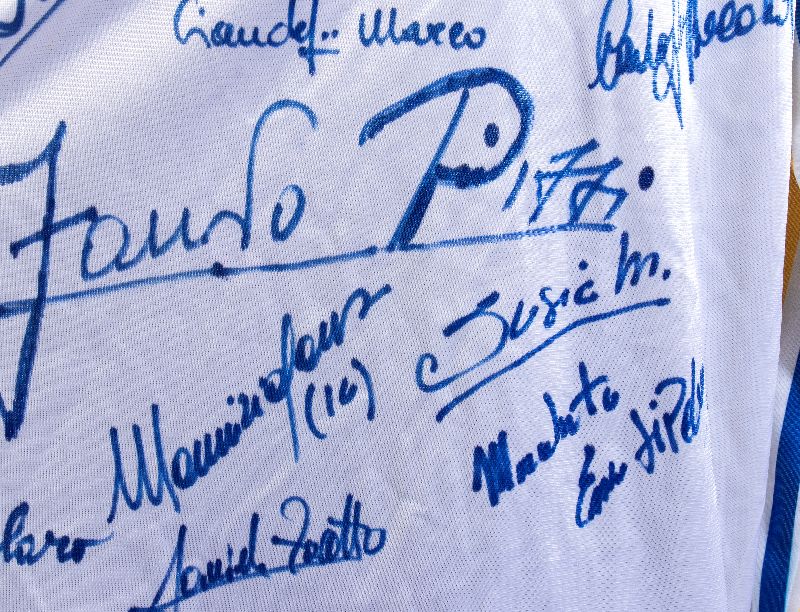 Si contano 20 autografi originali, tutti apposti di pugno con pennarello ad inchiostro blu. Si riconoscono tra tutti, le firme di Nevio Scala (allenatore), Cornelio Donati, Luigi Apolloni, Luca Bucci, Marco Ferrari, Minotti, Giandebiaggi, Bocchialini, Melli, Fausto Pizzi, Giacomo Zunico, Orlando, Gambaro, Maurizio Ganz, Susic, Zoratto, Morabito
