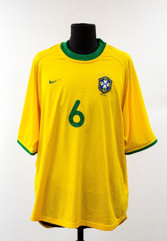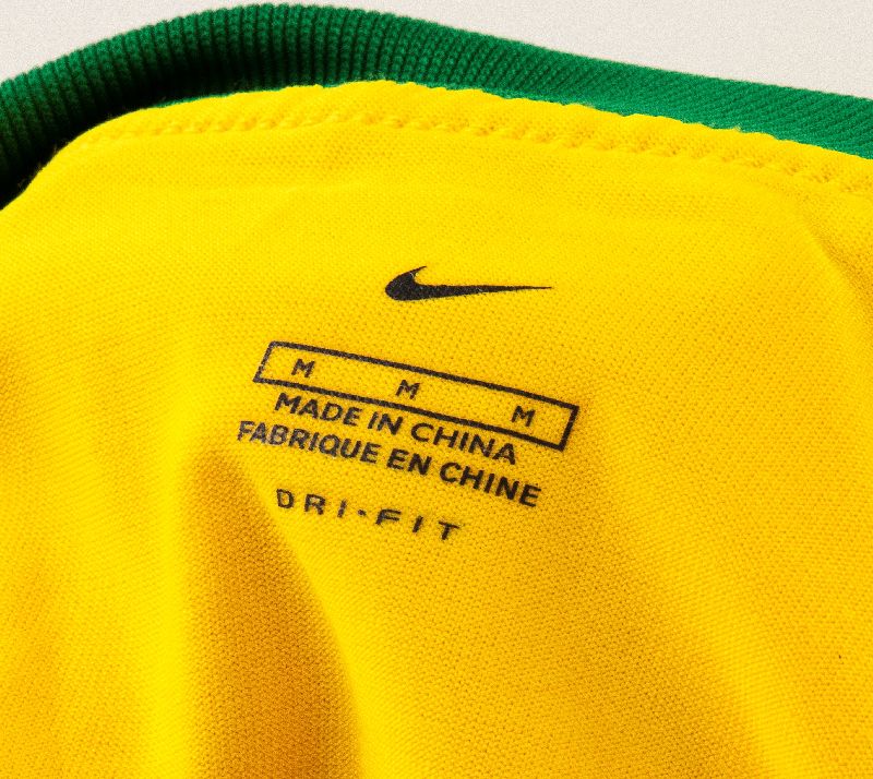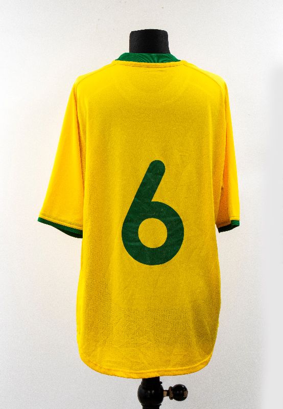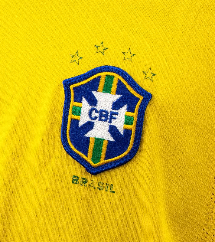 Sul fronte: sponsor tecnico NIKE in sublimatico (rovinato), stemma del Brasile CBF applicato e quattro stelle in sublimatico, numero 6 in sublimatico
