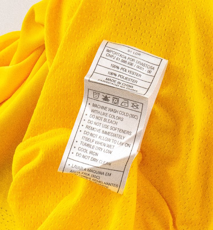 Etichette interne NIKE con informazioni sulla fabbricazione China, taglia M, composizione 100% poliestere.