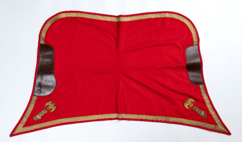 Gualdrappa da cavallo, coperta da sella in feltro con supporto in lino, preparata per ed utilizzata da Benito Mussolini.