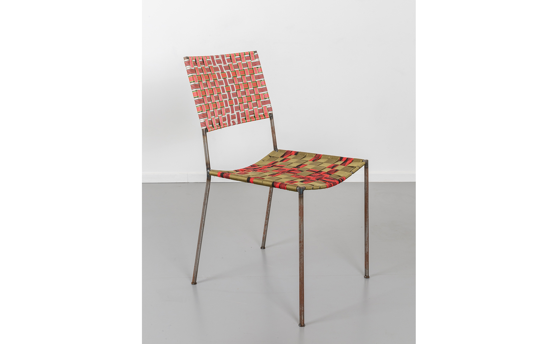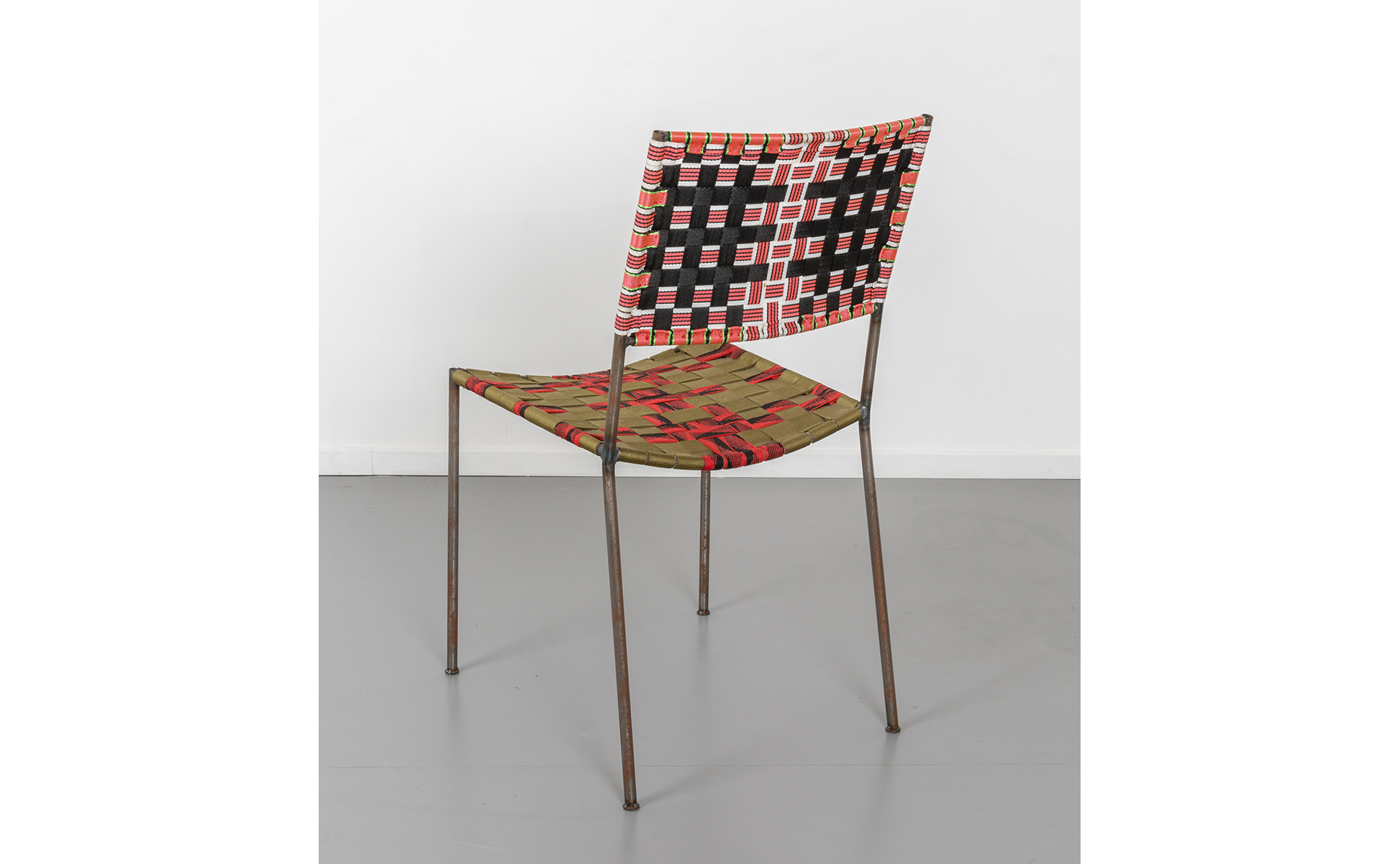 tubolare in ferro saldato cinghie multicolori di plastica intrecciate h cm 87 l cm 46 p cm 42 altezza di seduta cm 47