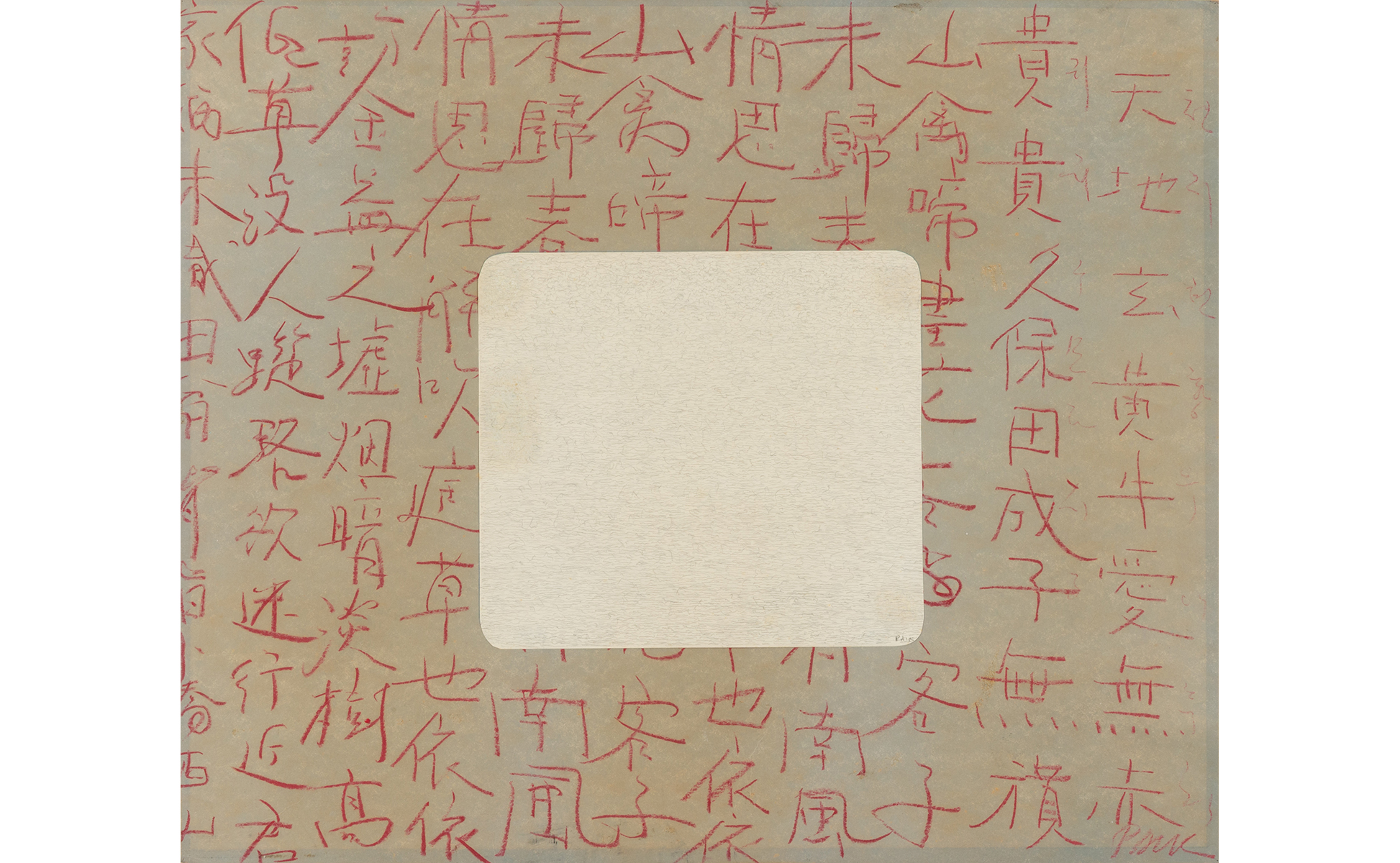 mixed media and collage on cardboard 23 62x27 55 in