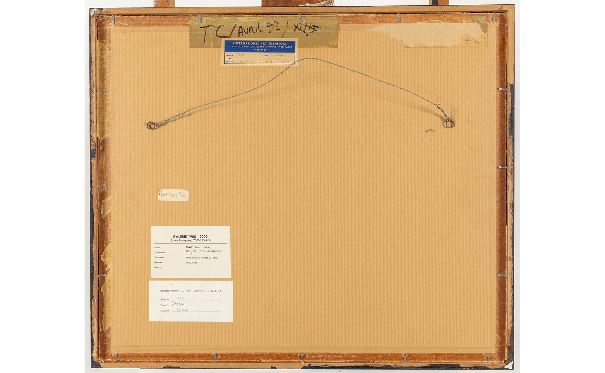 sul retro: etichetta della Galerie 1900 2000 Parigi;