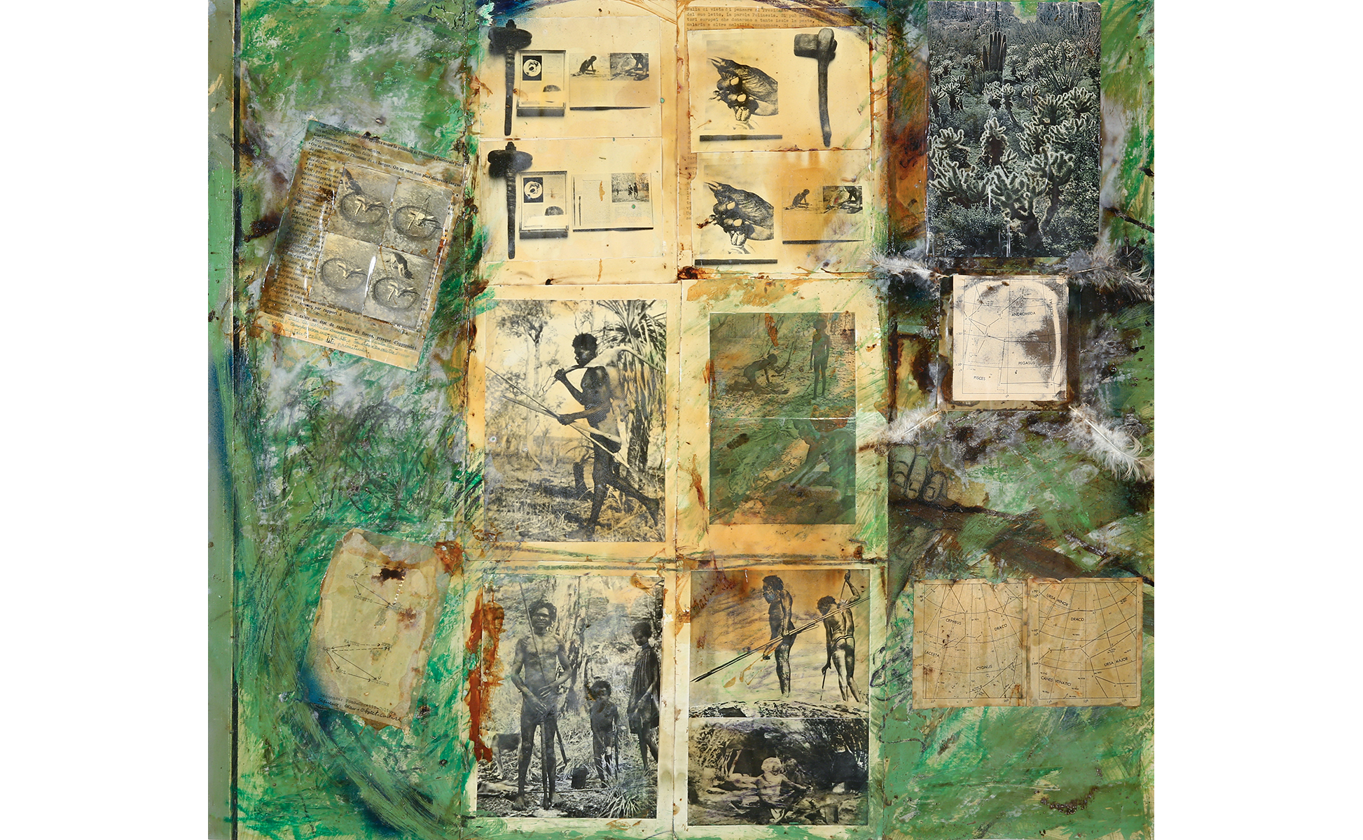 fotografie collage elementi animali interventi pittorici su tela cm 84 3x93 8