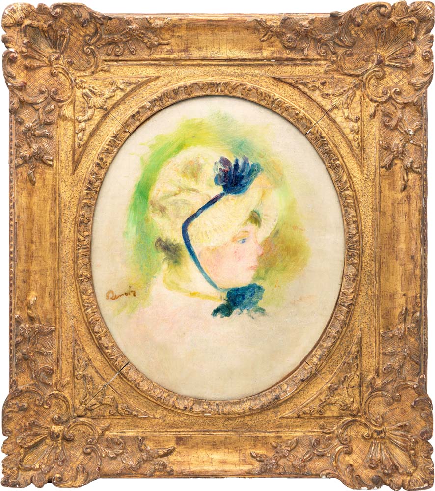 olio su tela ovale cm 29,8 x 24,7 - in cornice cm 45,4 x 40,3 1891 A. Vollard, Tableaux, Pastels & Dessins DE PIERRE-AUGUSTE RENOIR, Parigi, 1918, prima parte, n. 479, p.120 (ill.); N.B. erroneamente indicato nell’indice delle illustrazioni in fondo al volume come n. 463 a p. 116;
