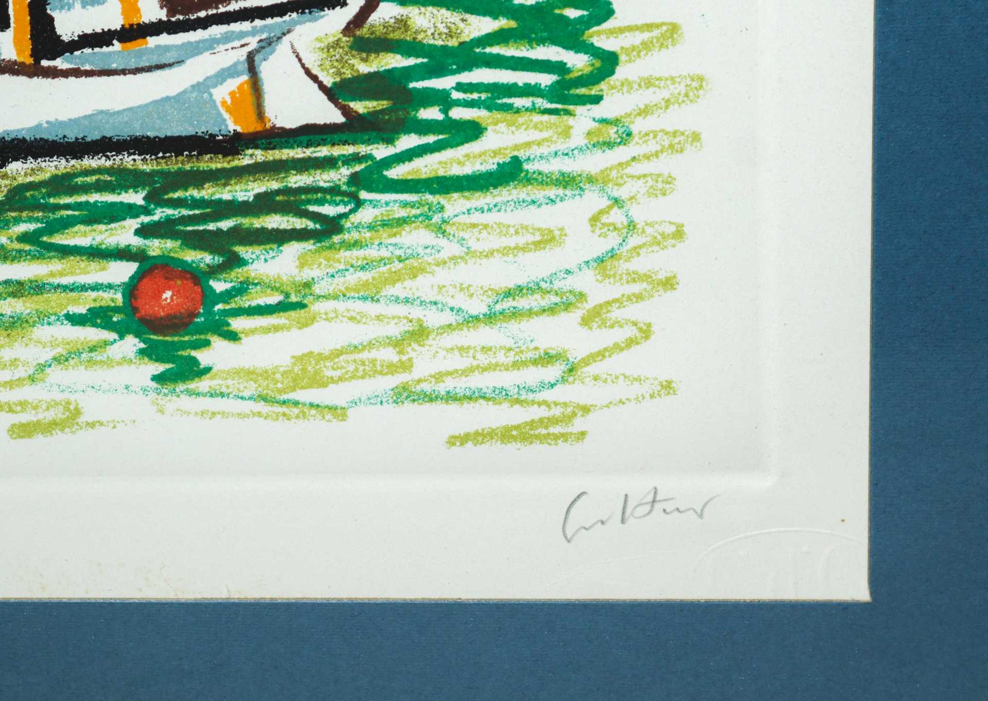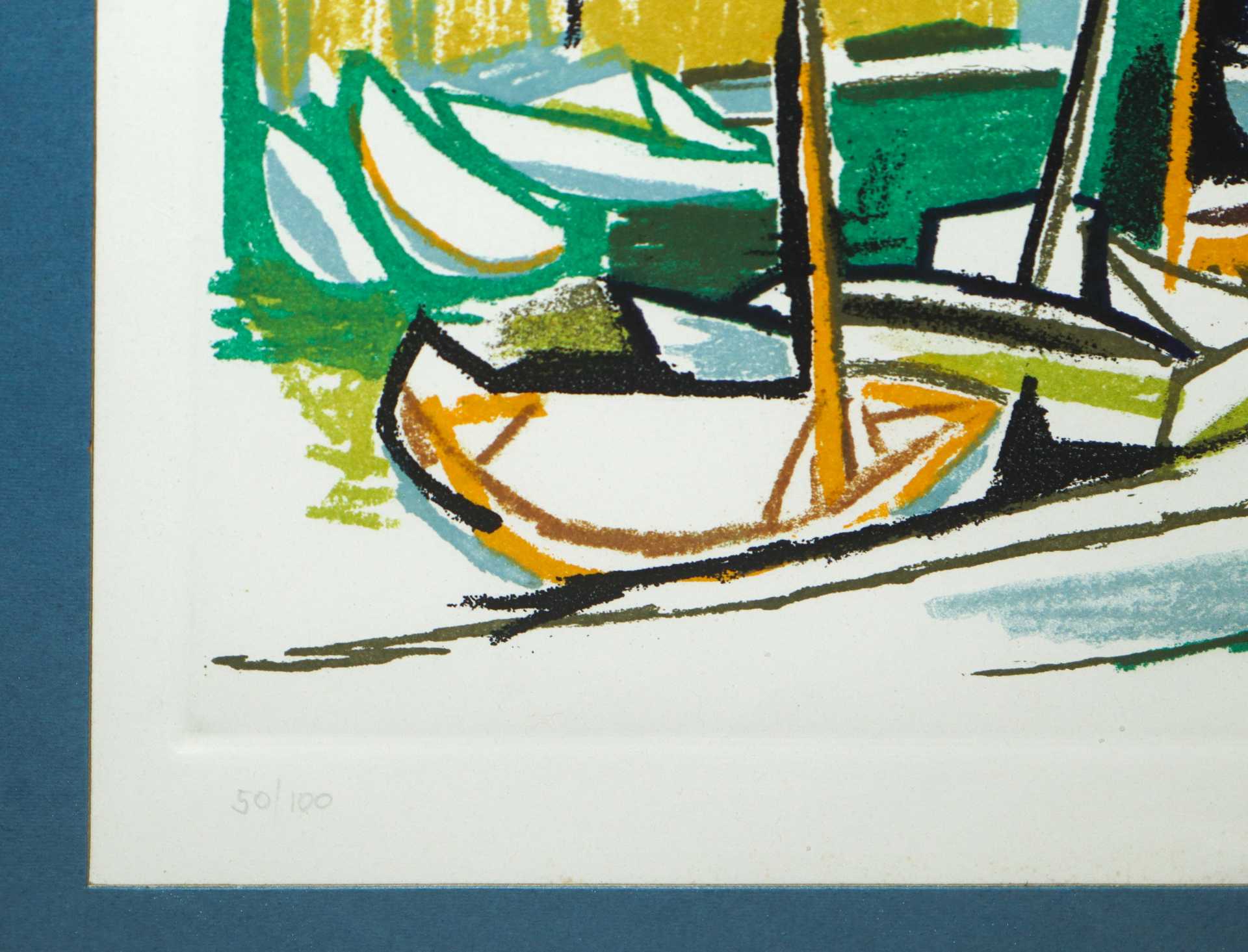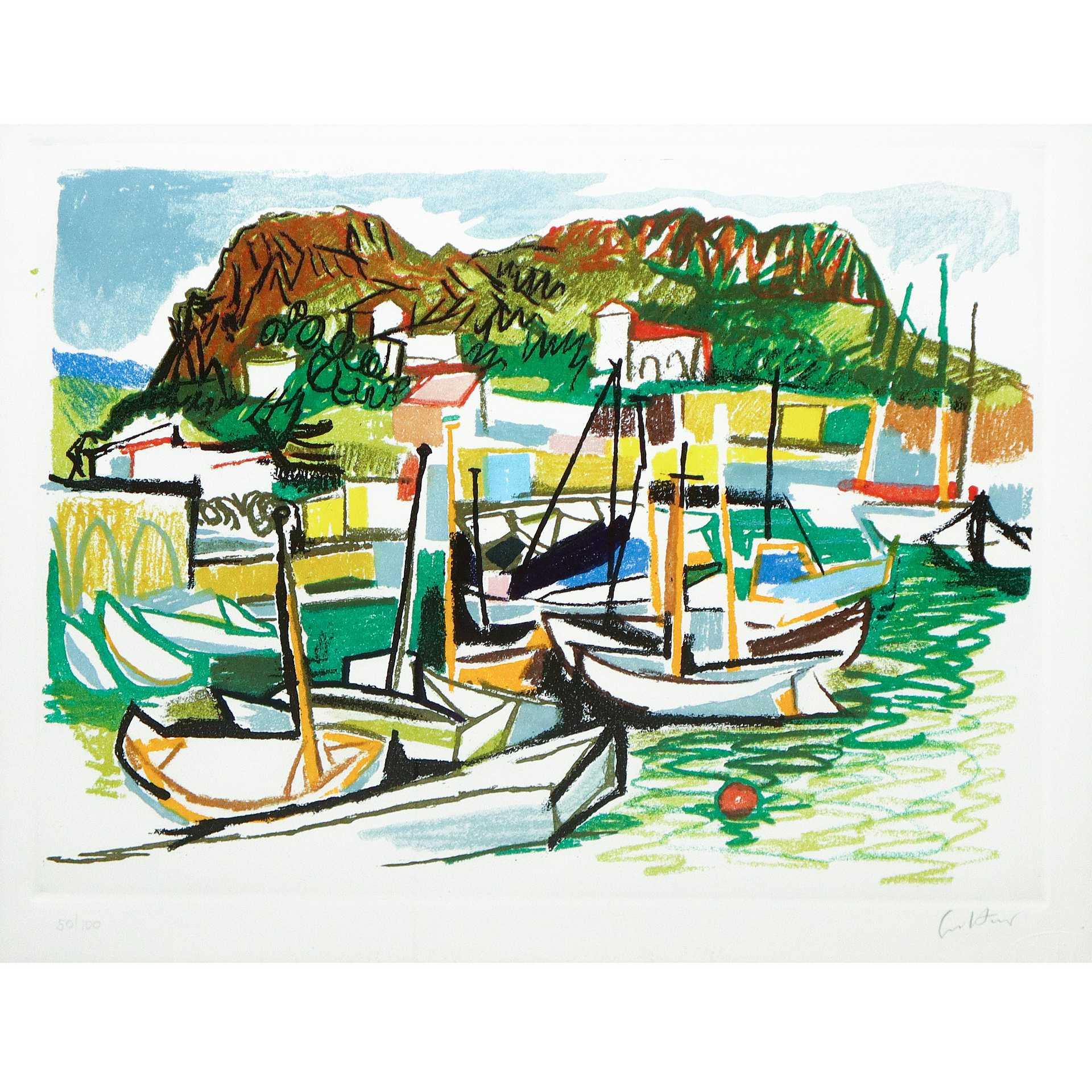 Renato Guttuso (Bagheria 1911 - Roma 1987) - Barche in porto sotto monte Pellegrino, omaggio a Picasso. h cm 37,5X45 in cornice h cm 54X74 serigrafia su carta Firmata in basso a destra. 50/100