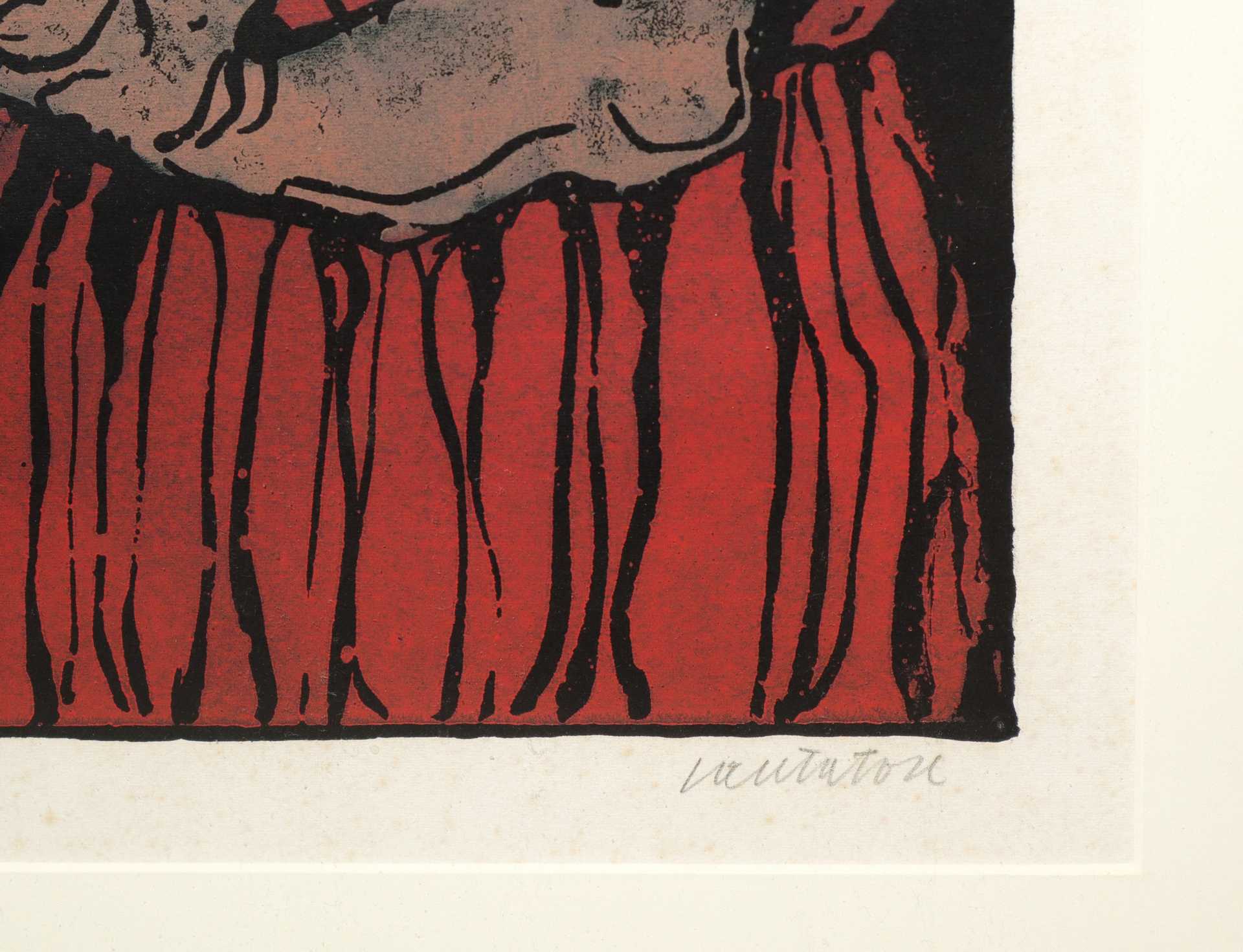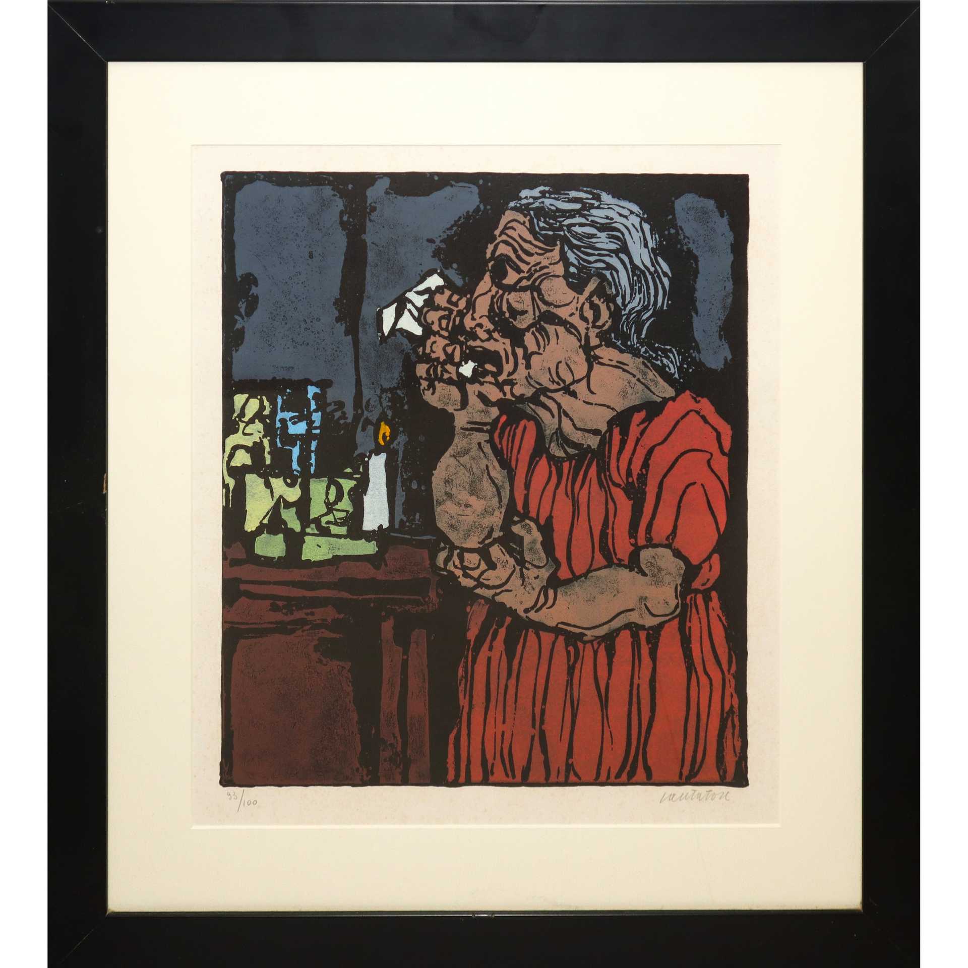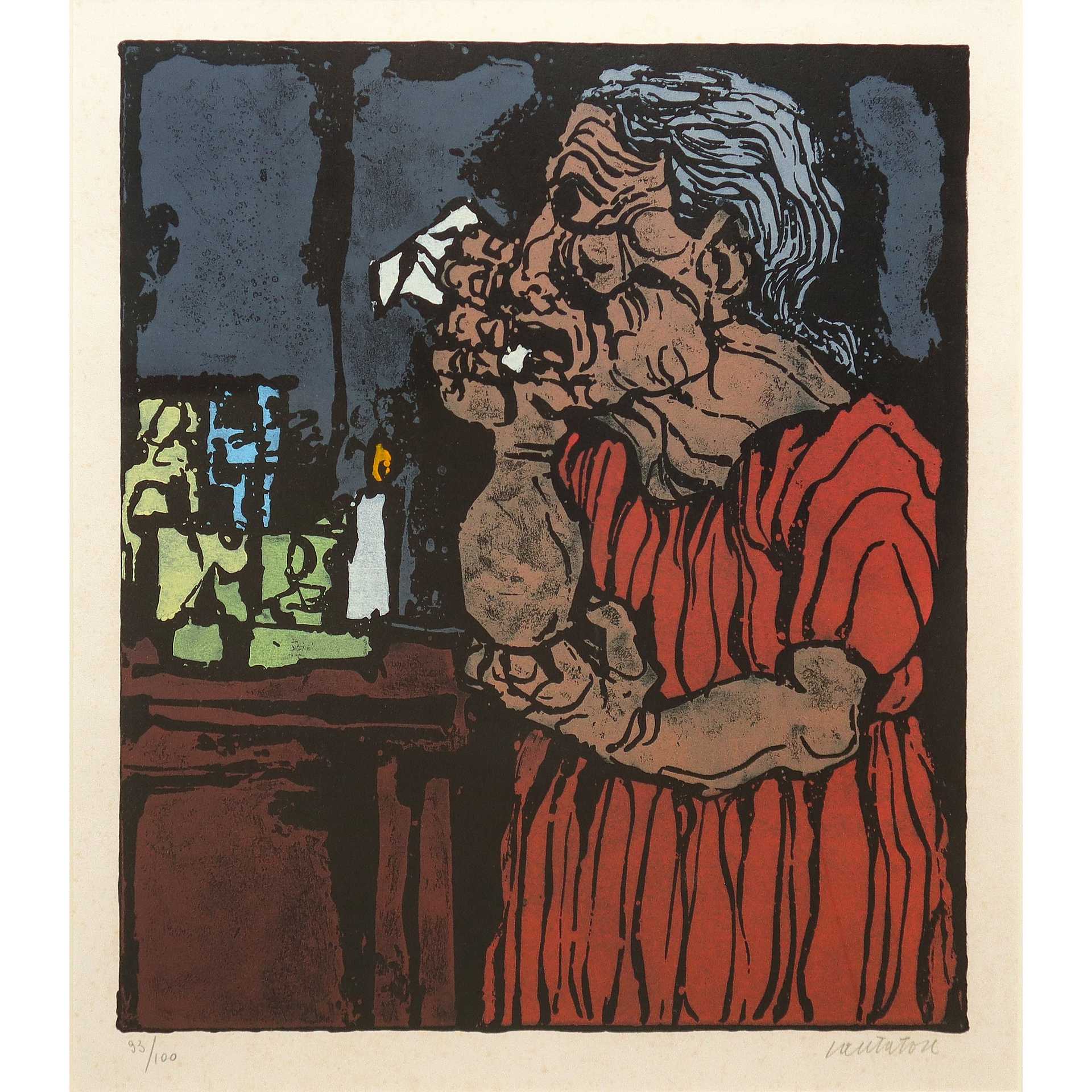 Domenico Cantatore (Ruvo di Puglia 1906 - Parigi, Francia 1998) - Anziana h cm 45X39,5 in cornice h cm 64X58 litografia Tiratura in basso a sinistra 93/100. Firmato in basso a destra.