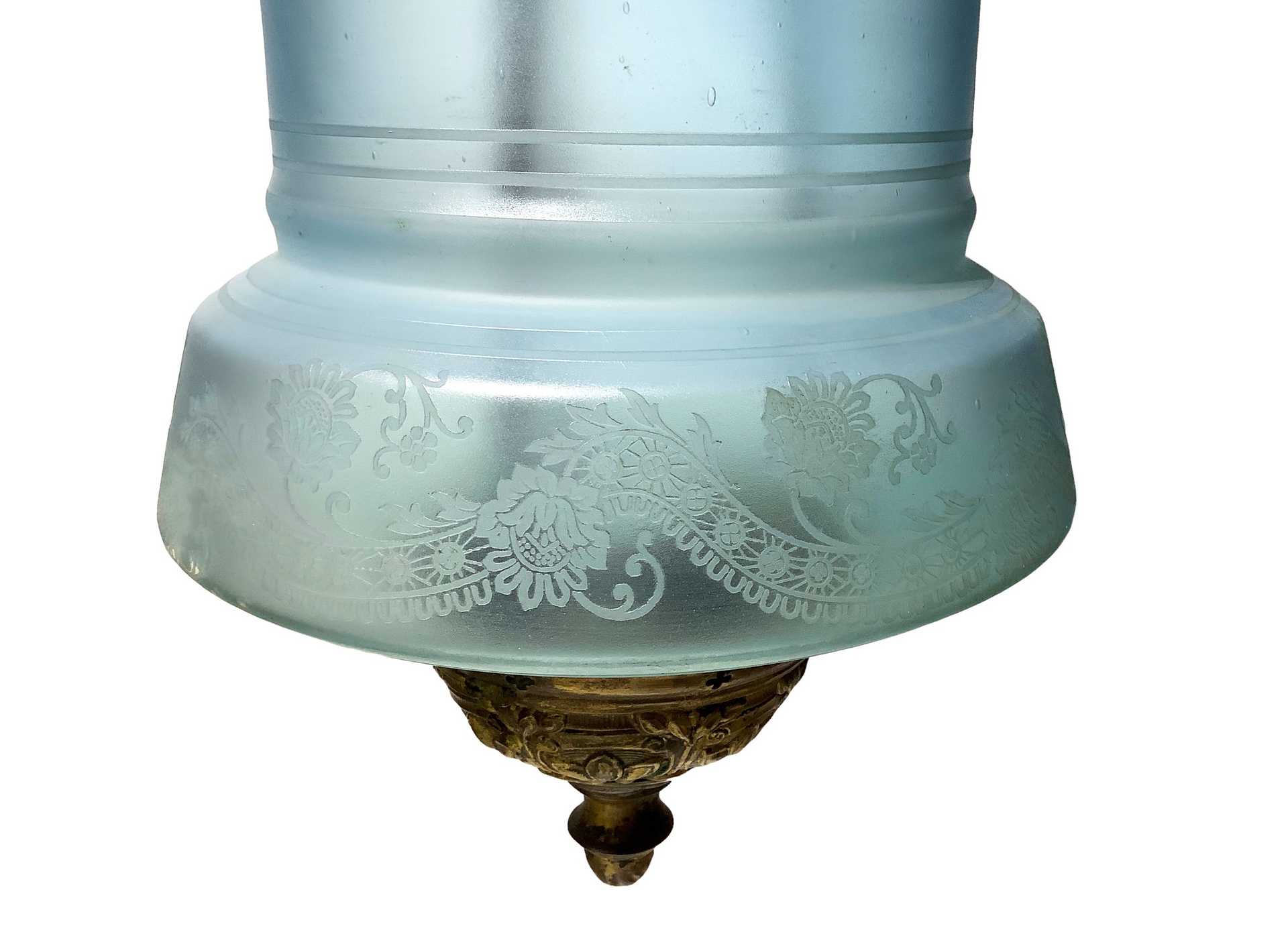 Lume in ottone e vetro di murano di colore azzurro bulinato , Early 20th century
