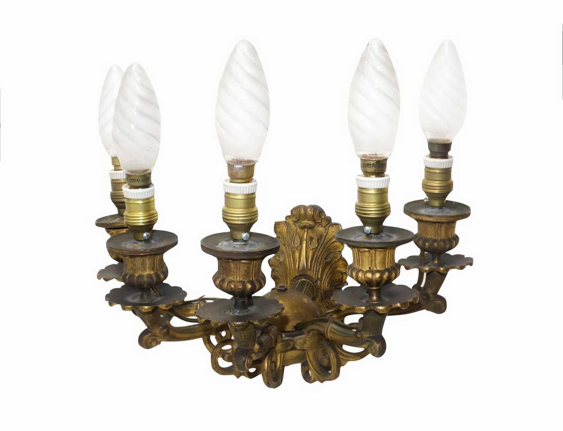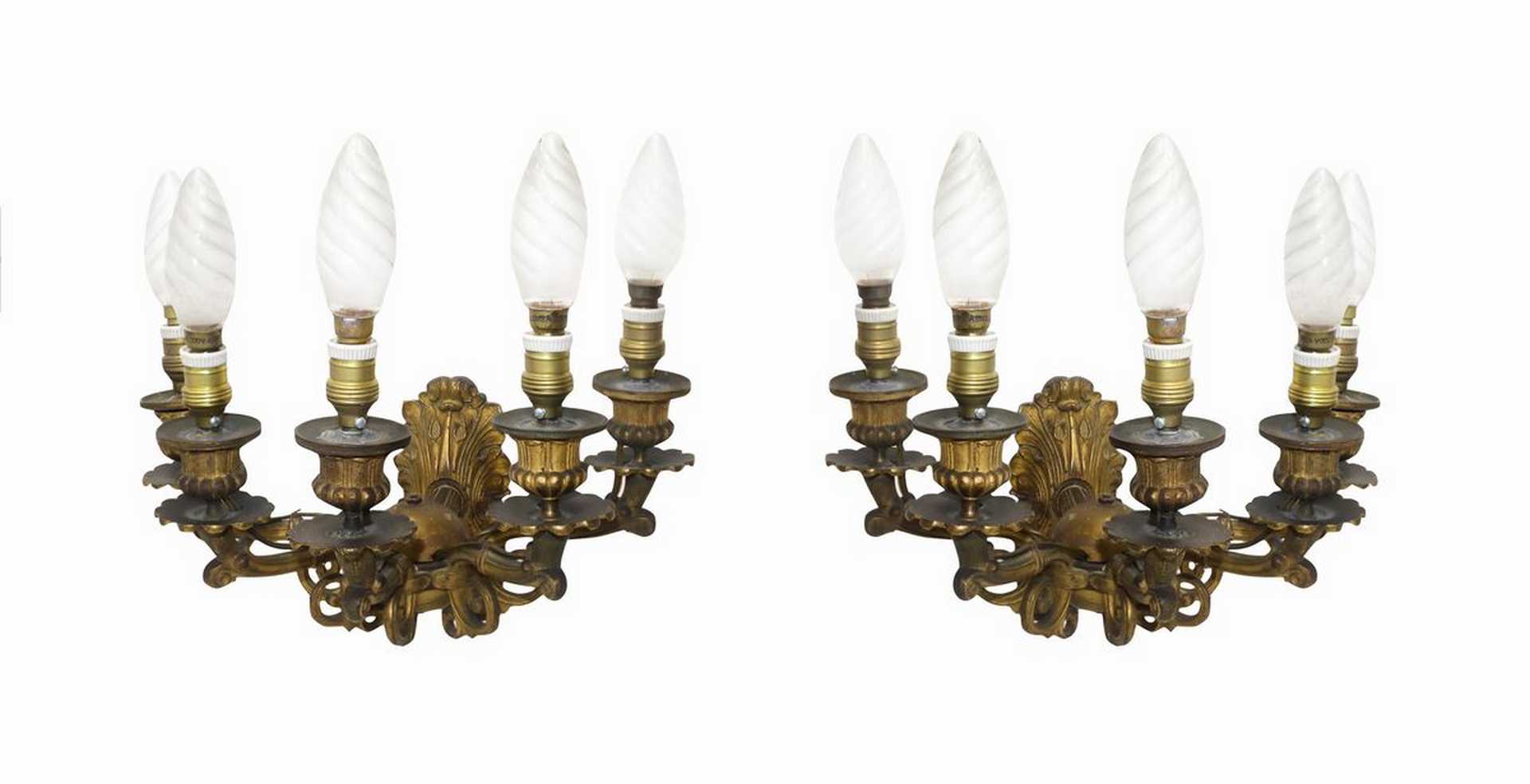 Coppia di applique in ottone dorato, Late 18th century h cm 15 x cm 7,5; profondità cm 28 A 5 luci