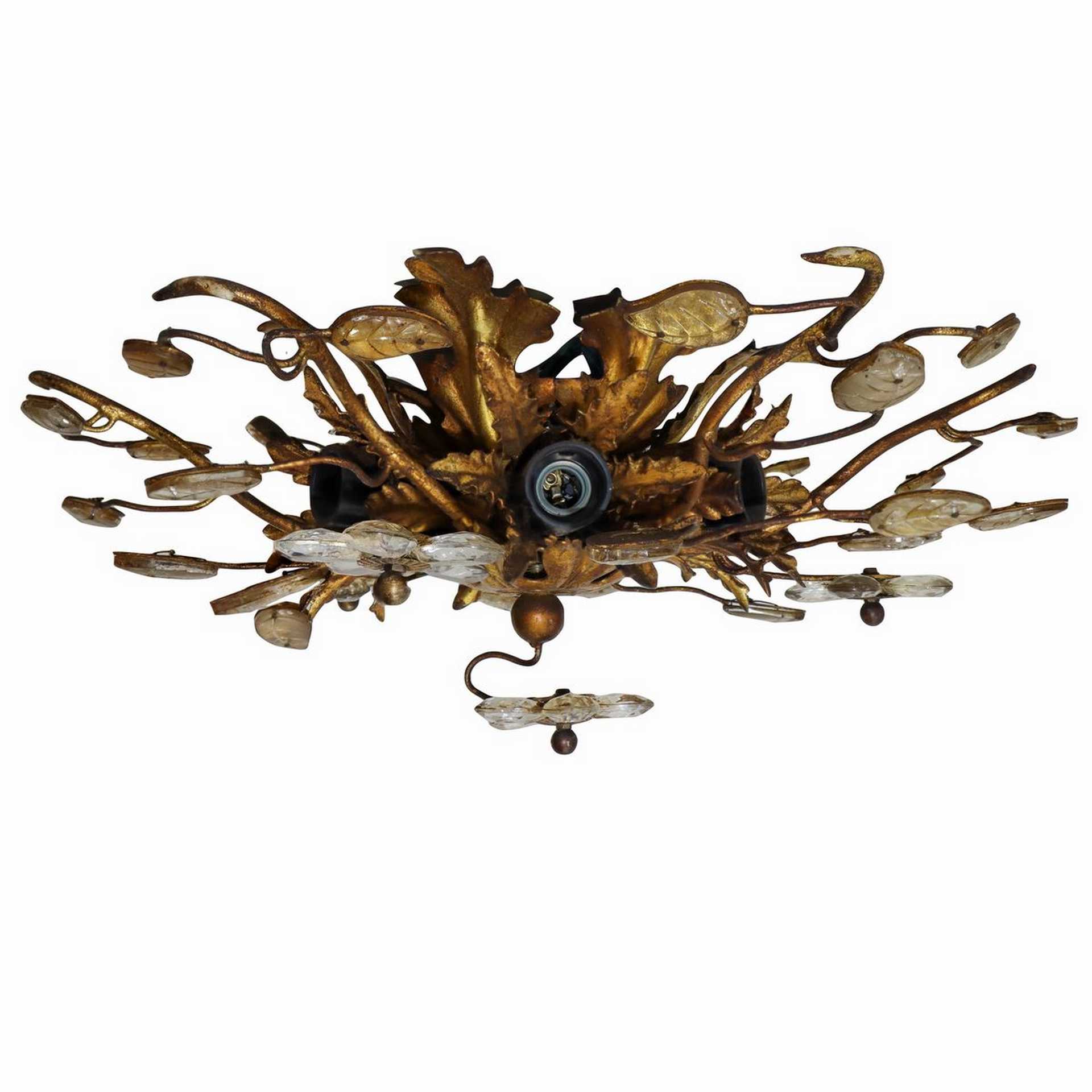 Plafoniera a 6 luci in metallo dorato con cristalli molati
