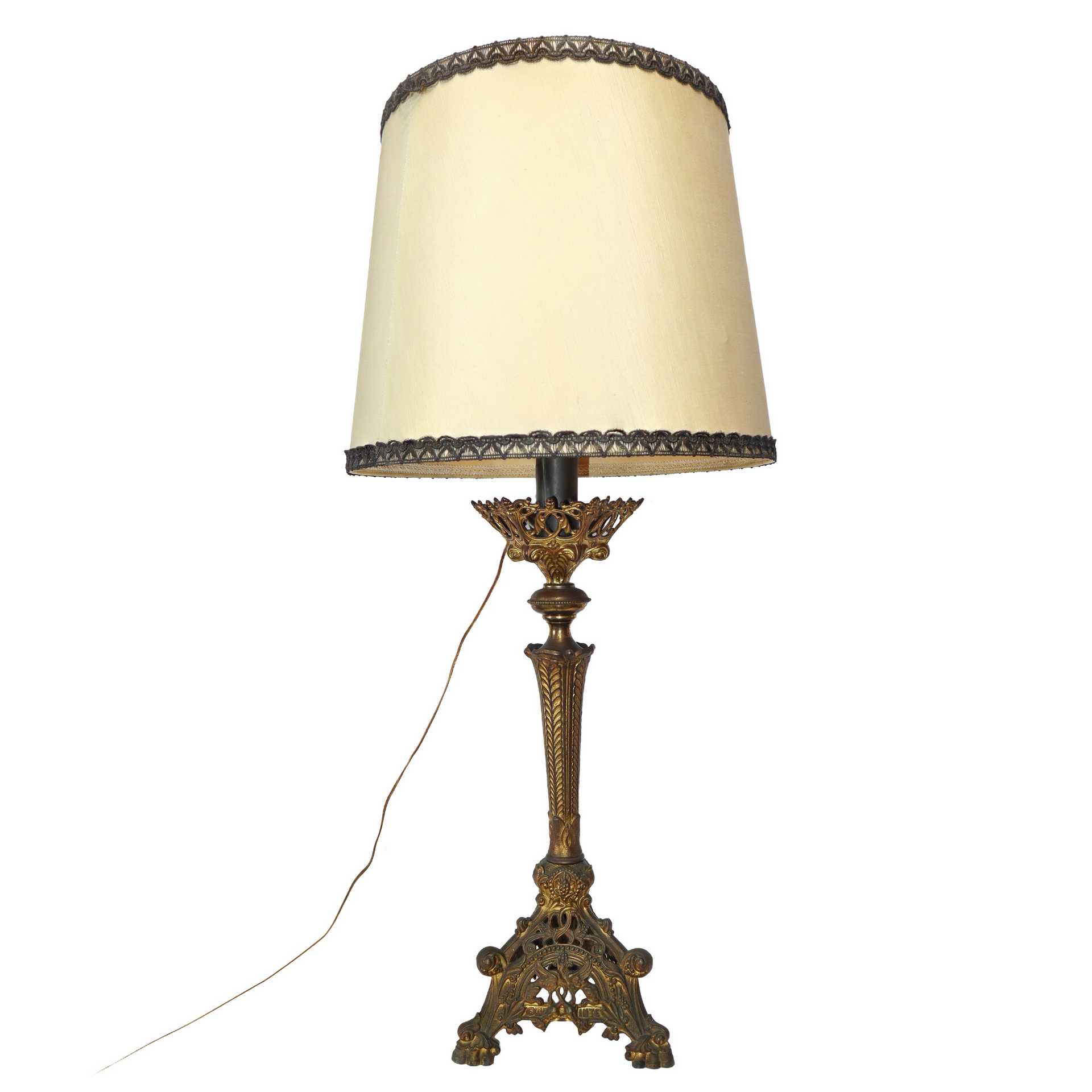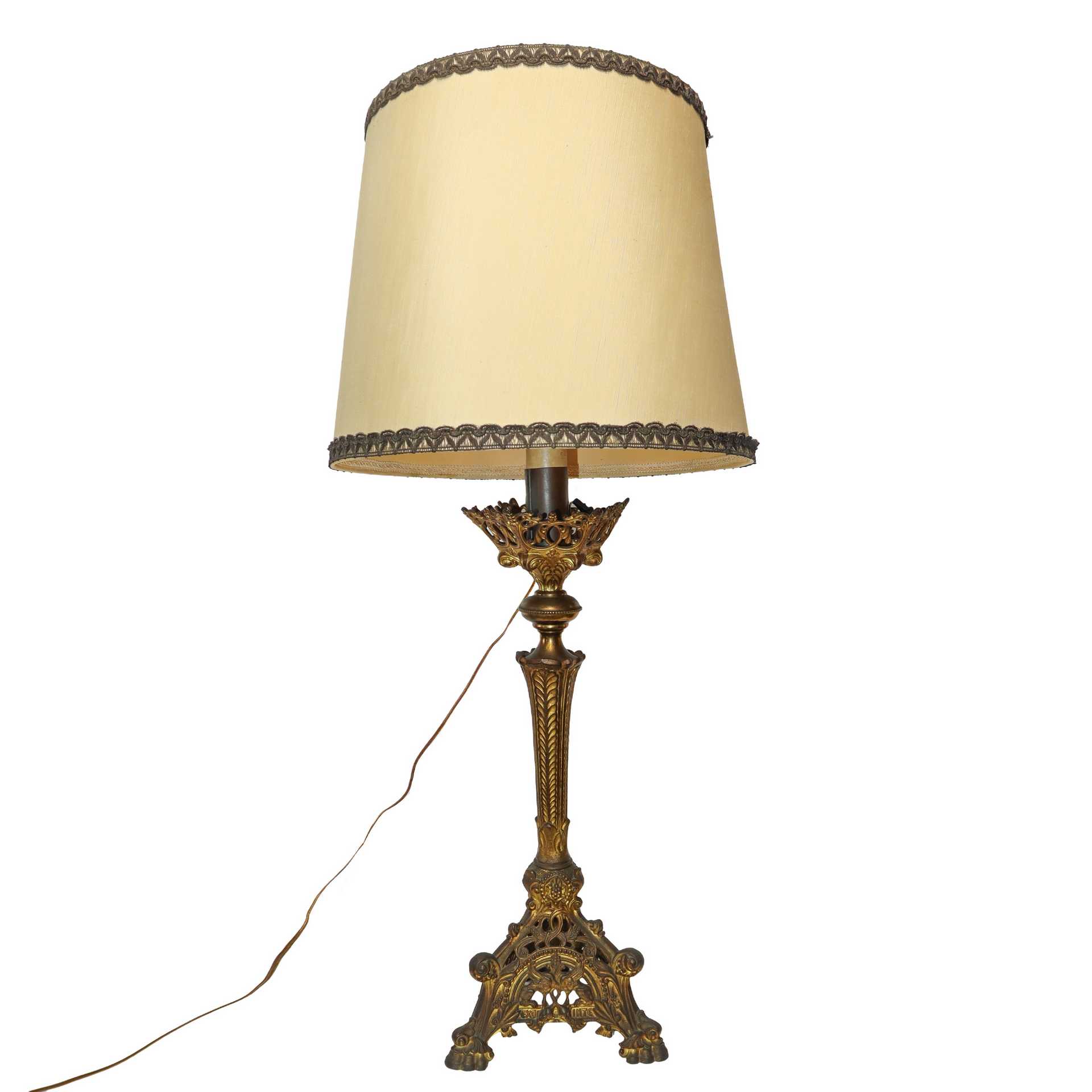 Coppia di lumi con base in metallo dorato, 19th century cm 86,5X31