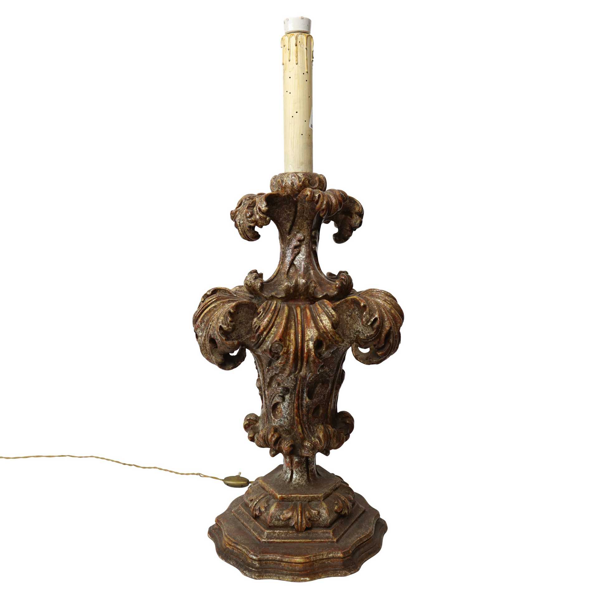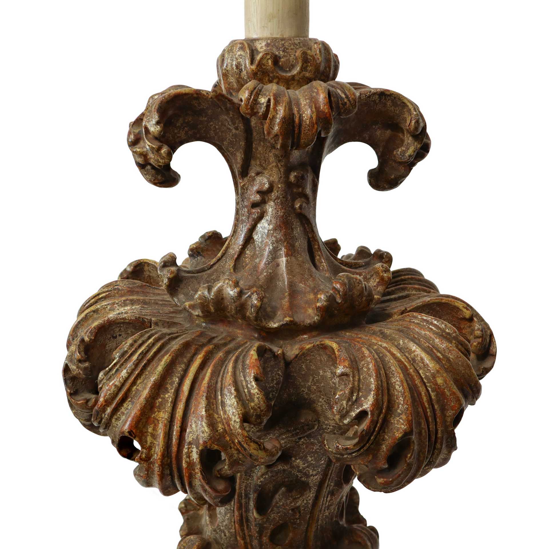 Lume con base in legno scolpito e intagliato, 20th century h cm 60 con paralume cm 110