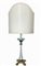 Lume in vetro opaline di colore bianco e celeste, Early 20th century H cm 100 con paralume, cm 59 senza paralume base in bronzo dorato con ventola