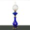 Lume a petrolio in vetro blu dipinto a fiori con diffusore in vetro a palla bulinato, Early 20th century H cm 80
