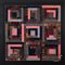 Arazzo su supporto rigido quadrato laccato nero, composto da formelle quadrate policrome tessute a telaio con decori geometrici differenti (Missoni). Etichette di produzione Missoni e Saporiti.