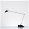 Lampada da tavolo ad una luce modello 'Zante', bracci orientabili in metallo cromato con cavi in acciaio, diffusore in abs nero orientabile, base semisferica in abs. Marchio di produzione alla base.