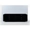 Cassettiera in legno laccato nero lucido, piano rettangolare, sul fronte 7 cassetti di diverse dimensioni, maniglie e piedi in acciaio cromato.
