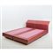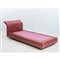 Coppia di letti con struttura in legno, imbottitura e rivestimento in pelle magenta.