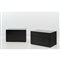 Coppia di comodini con struttura in legno laccato nero lucido, piano rettangolare, sul fronte tre cassetti.