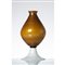 Vaso in vetro soffiato bicolore lattimo e ocra con inclusioni oro, corpo a goccia con basso collo e bocca circolare piana, base circolare.