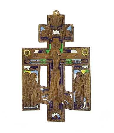 ICONA RUSSA DEL XX SECOLO Crocefisso Bronzo e smalti, cm 22x13,5.