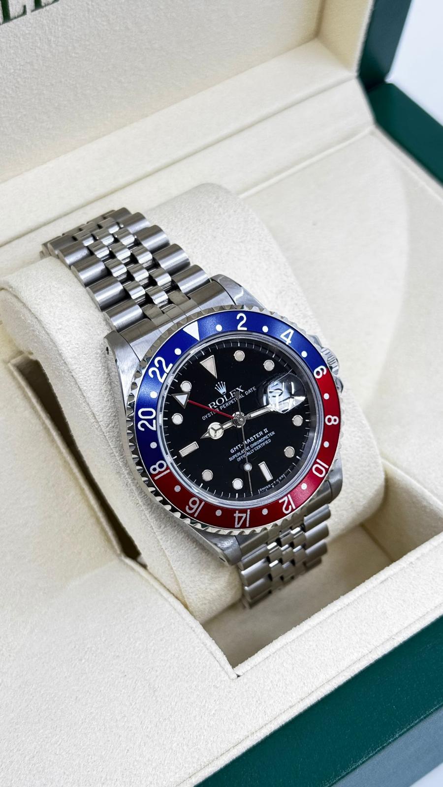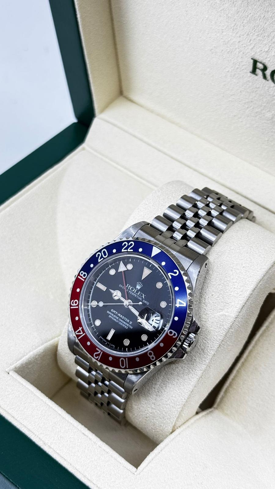 Marca Rolex Modello (Orologio) GMT-Master II Numero di referenza 16710 Carica Automatico Materiale della cassa Acciaio Materiale cinturino Acciaio Condizione Usato L'articolo presenta segni di usura lievi, come ad esempio graffi leggeri, ma non percepibili al tatto. documenti originali Rolex, no box la scatola utilizzata solo per fotografie non in vendita Un anno di garanzia del negozio Carica Automatico anno 1992 Materiale della cassa Acciaio Diametro 40 mm Impermeabile 10 ATM Materiale lunetta Acciaio Vetro Vetro zaffiro Quadrante Nero Numeri sul quadrante Senza numeri Cinturino Materiale cinturino Acciaio Colore cinturino Acciaio Chiusura Déployante Materiale chiusura Acciaio Funzioni Data, GMT - COMMISSIONE D’ASTA 25%