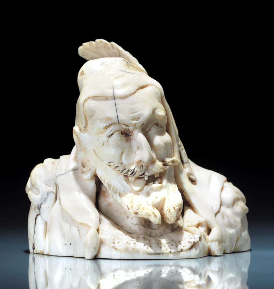 BUSTO IN AVORIO, XIX SECOLO, raffigurante il Faust: rincollo alla piuma.