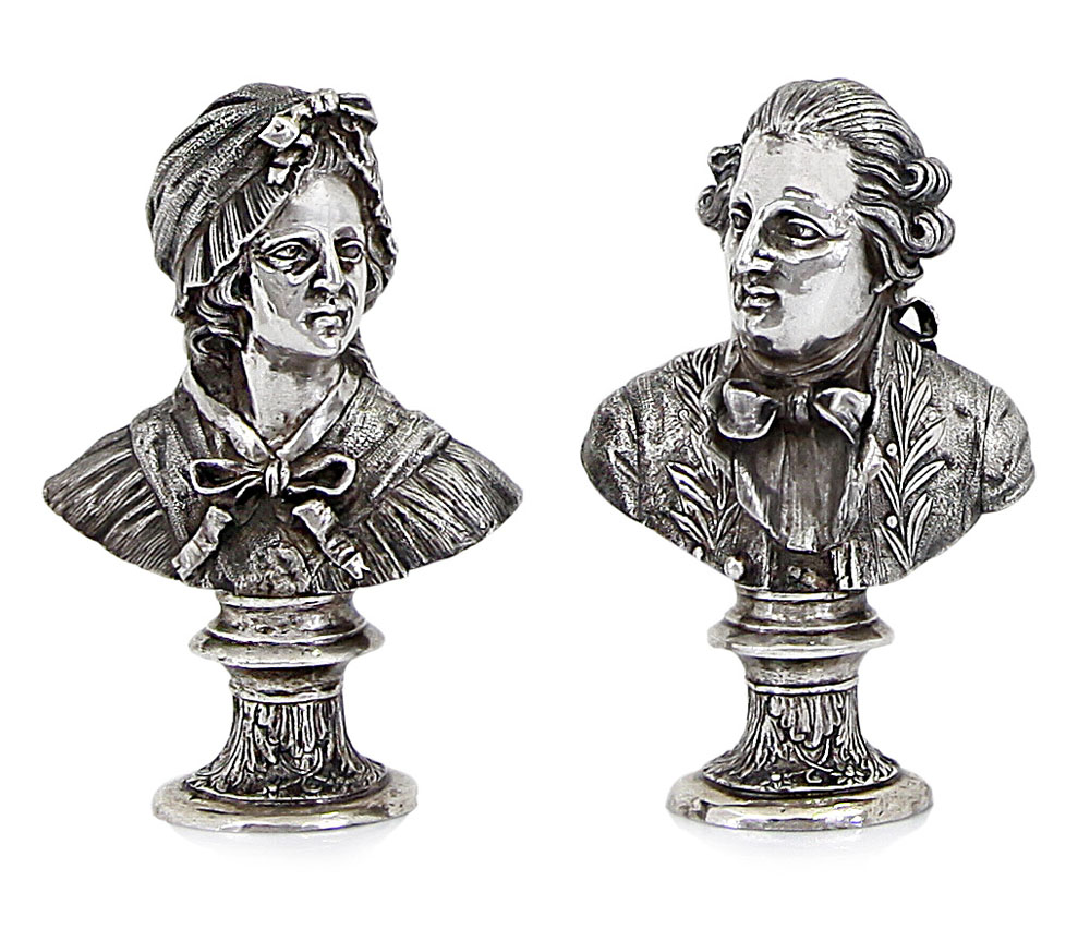 ARGENTI D'EPOCA COPPIA DI BUSTI IN ARGENTO, GERMANIA, XIX SECOLO,...